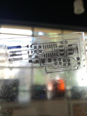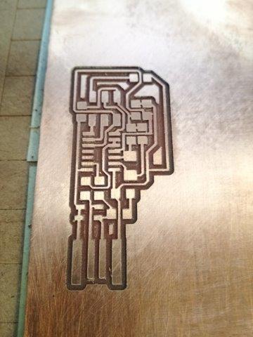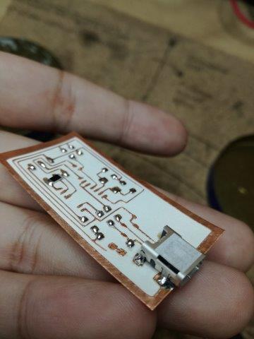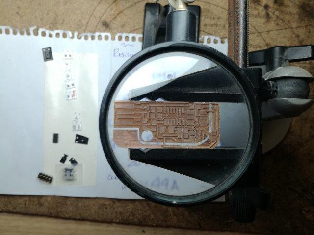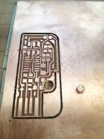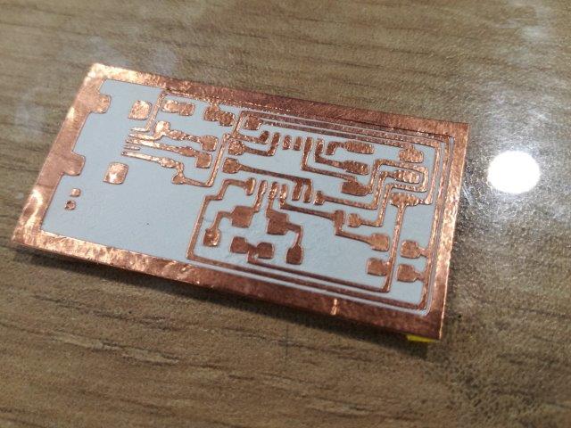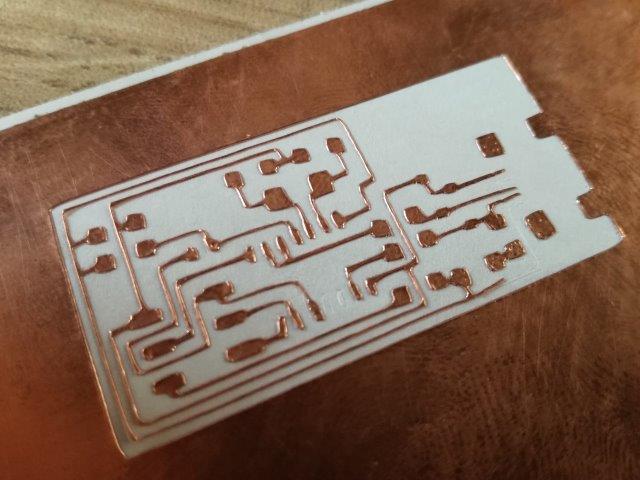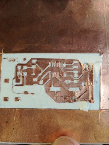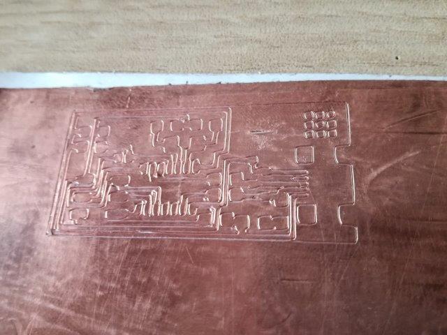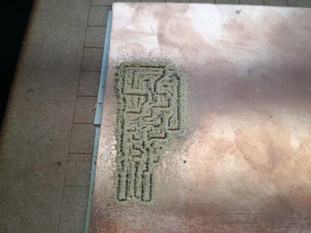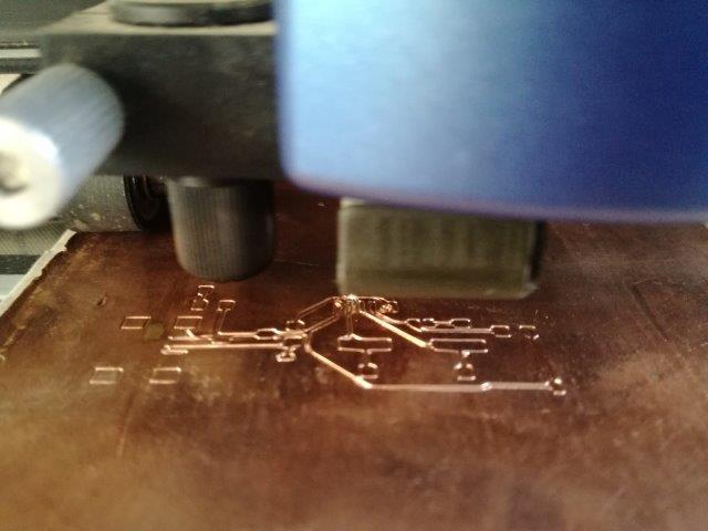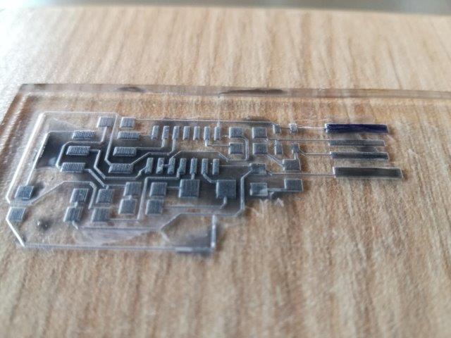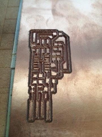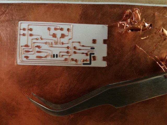 The cut was good but the weeding took some parts of the traces… Anyway, maybe the traces were too thin for the substrate I was using since the pulling of the residue has a lot more area, some of the traces are easily lifted or moved with it.
