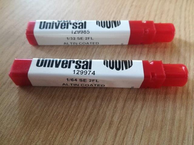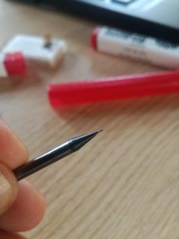 The milling bits available in the FabLab were one 1/64" (approx. 0.39mm) for the traces and a 1/32" ( approx. 0.79mm) for the outline.