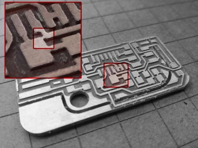 Do all the traces look good? Is it milled like the design? The answer is yes to both, but I spotted a minor flaw in the milling process that caused a join on two traces.