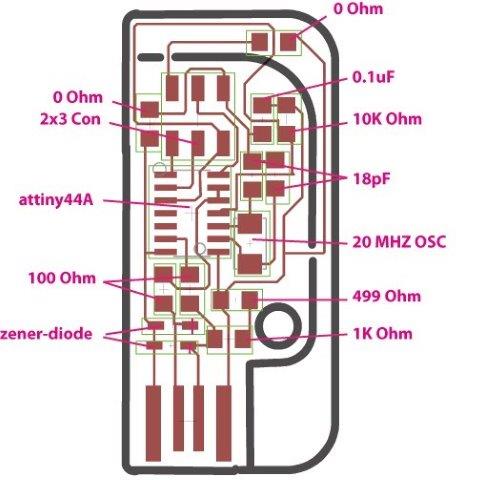 Some notes: The files from Valentin does not show the orientation of the ATTiny or the diodes, so I've used the photos of his board as a guide. As a contribution, I'll be doing a custom design file for the board and uploading it here soon.