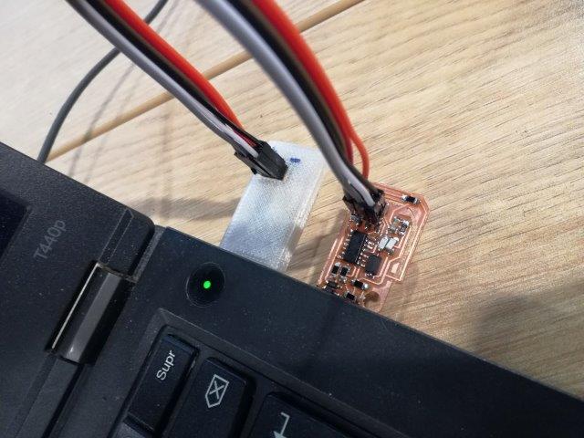 Some notes: The first issue was that the new FabISP was not connected to the USB port, instead I connected the instructors FabISP. I cut the part of the USB connector to fit the USB port to be able to connect the new FabISP.