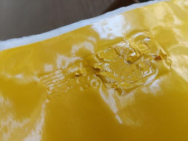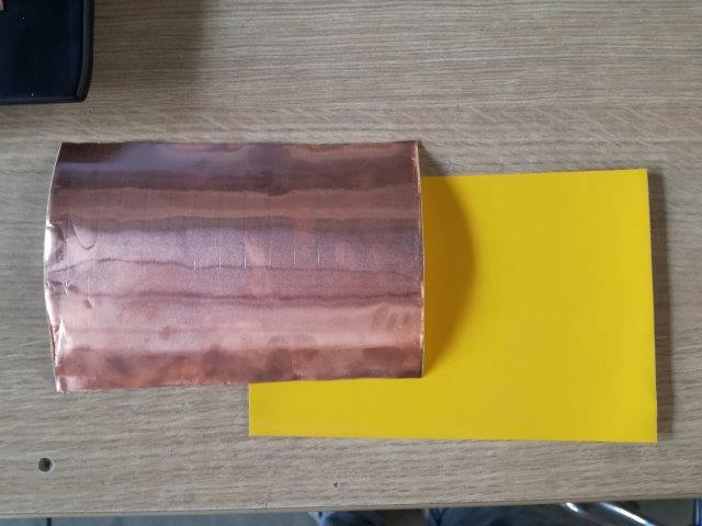 For the third attempt I wanted to go all-in, so I made a new substrate sticking the copper tape, to the back of the yellow vinyl.
