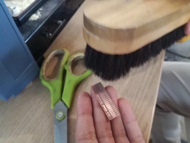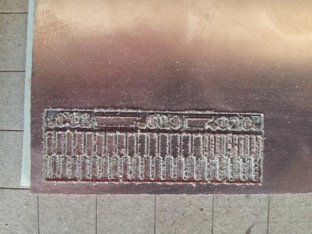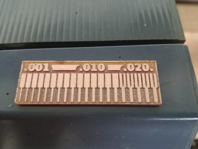 After the traces milling process ended we press the view button on the machine to inspect the finished piece, we carefully brush off the milling residue and noticed that the edges on the trace have a rough finish.