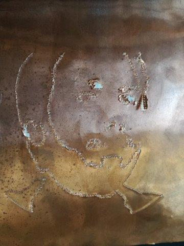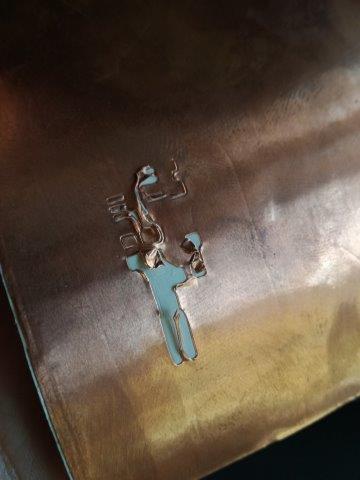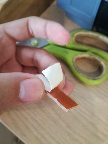 After some more tests on vinyl, I was ready for the copper tape, so I've done a test on the material as it was, without additional sheets or transfer. It did not work, as soon as the tip started cutting the traces lifted.