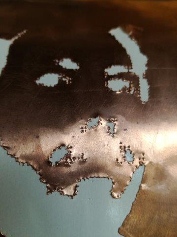 It went well, the cutter does some kind of dot marking and cutting following the curly pattern, so there's a possibility here to try some cleaner halftone pics.