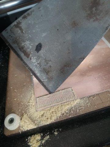 As milling material, we used a single-sided copper square plate of 100mm, and for the test templates, we used the files available here: one for the traces, and one for the outline of the board, both in .png format.