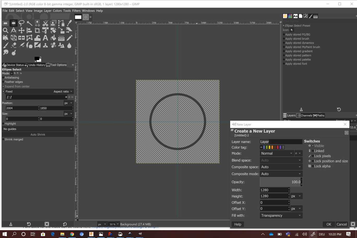 Change file properties (fill with transparency). Add guides(50% horizental ,50% vertical).Create a center circle