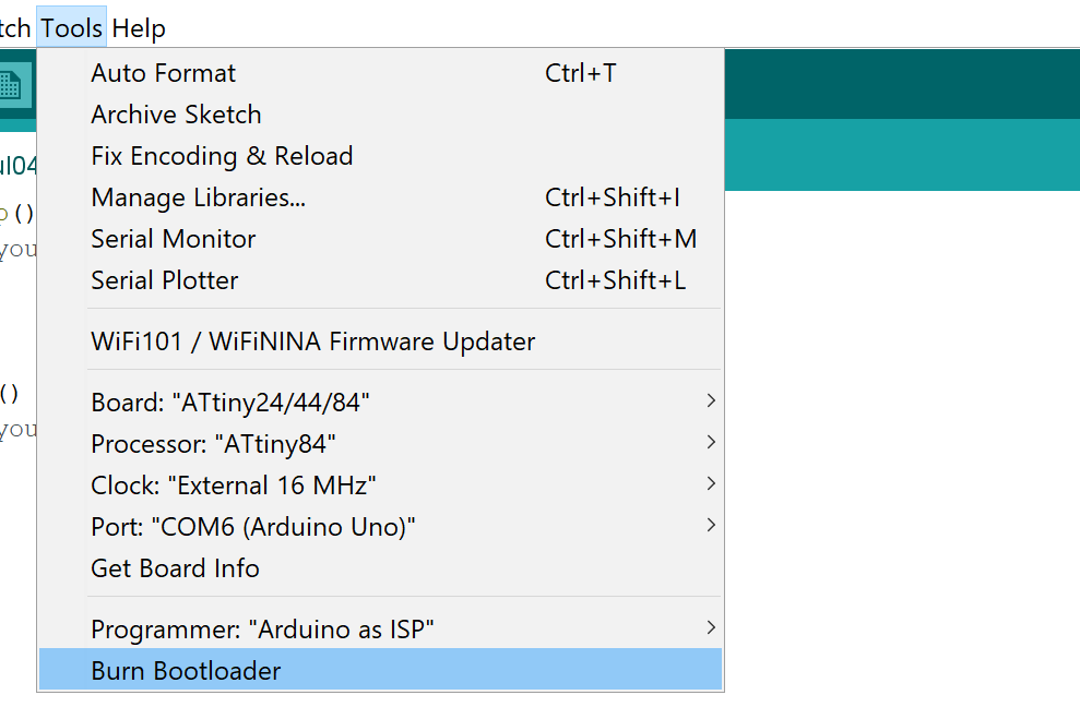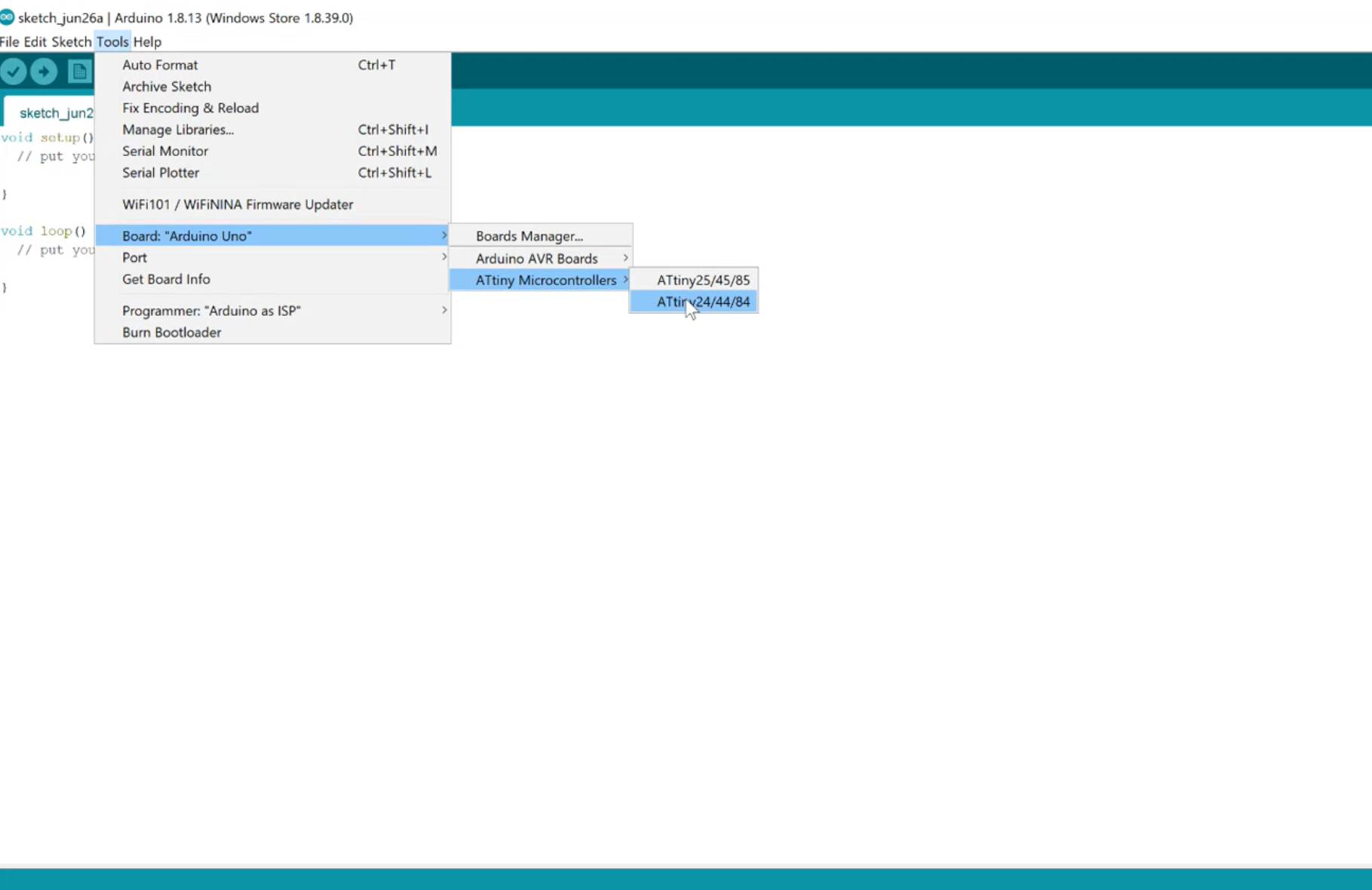 Now i m able to select my aTtiny microcontroller which is ATtiny 84