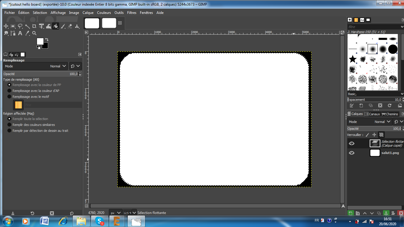 Export the document as a png image, with 500 dpi and in ‘Monochrome’.I used gimp software to make a cut out for the board