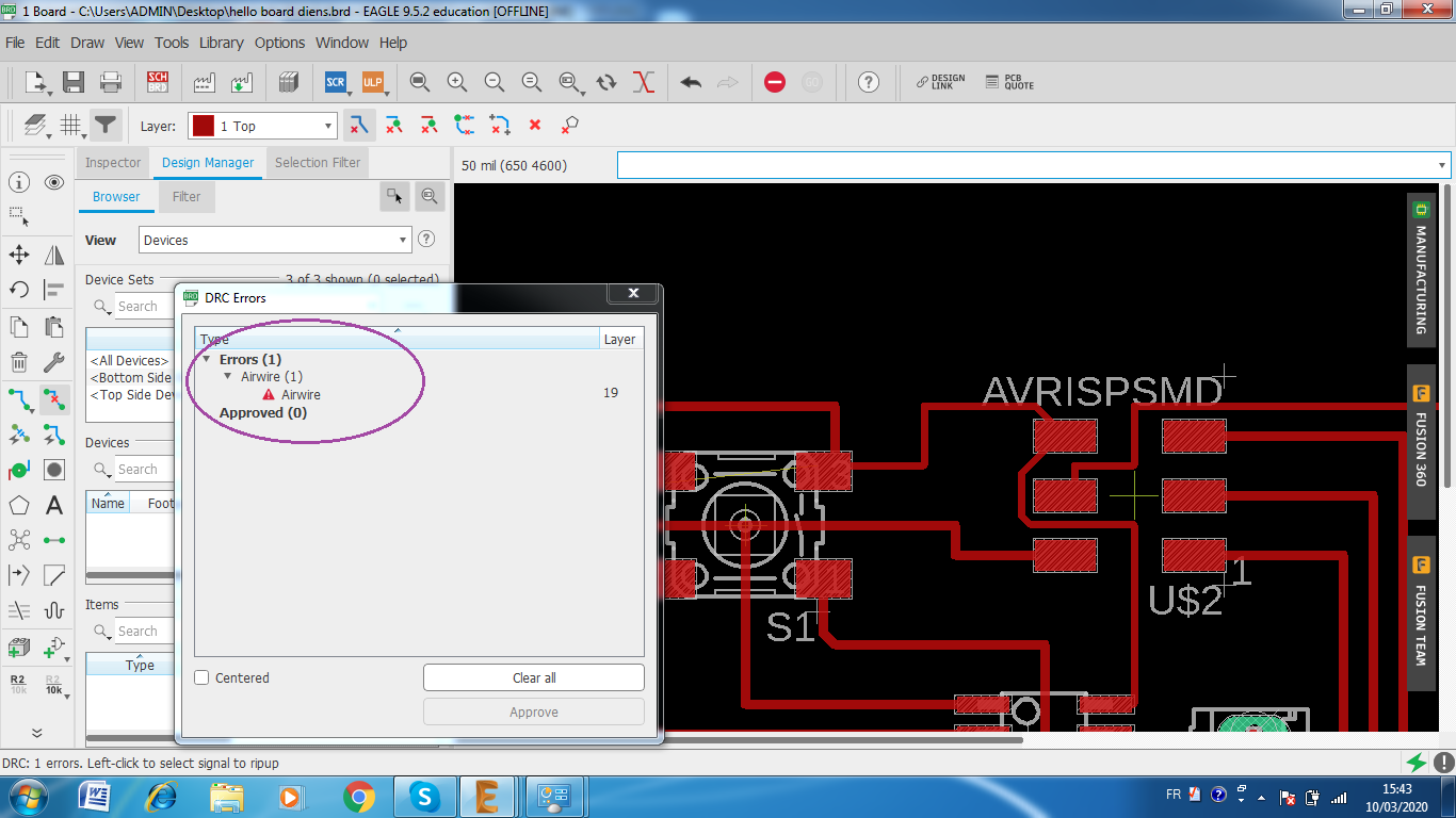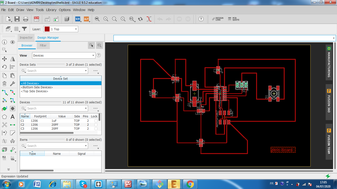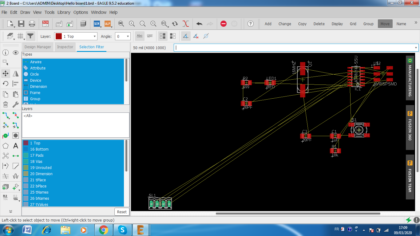 I have never used a PCB Design software,but after an introduction to Autodesk Eagle from the instructor I could draw my PCB taking the ‘Hello World Board’ as a reference.