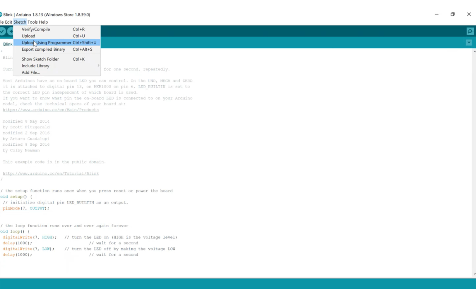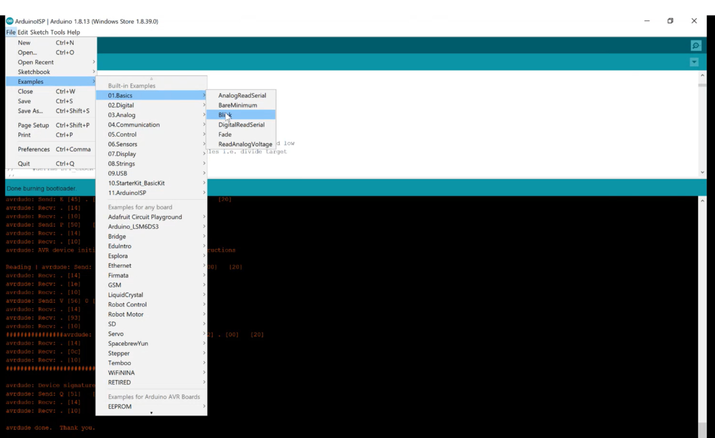 Now i need to blink the Hello board LED , so i need to choose from basic examples the blink code and uploasd it using programmer