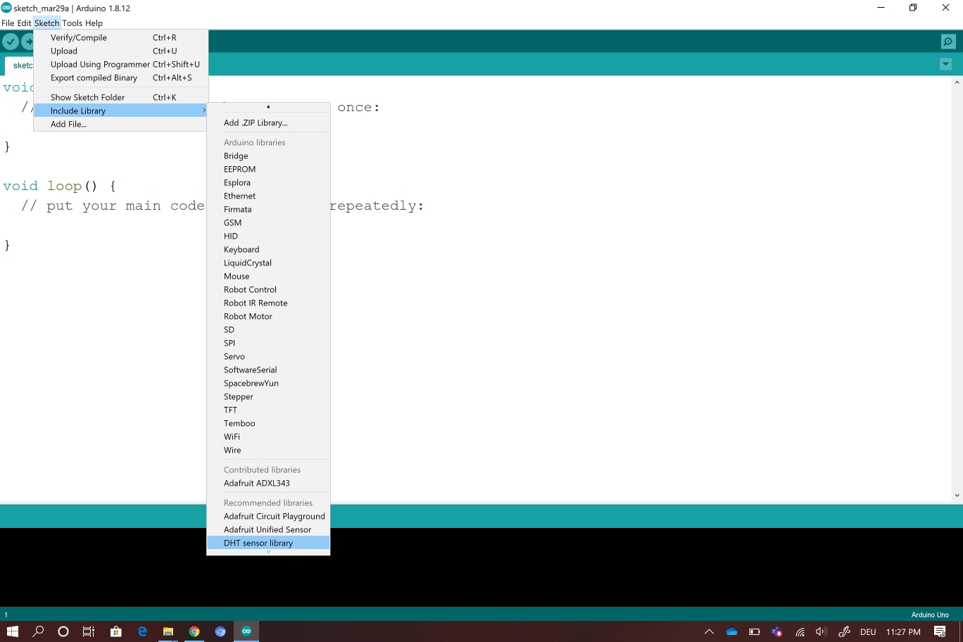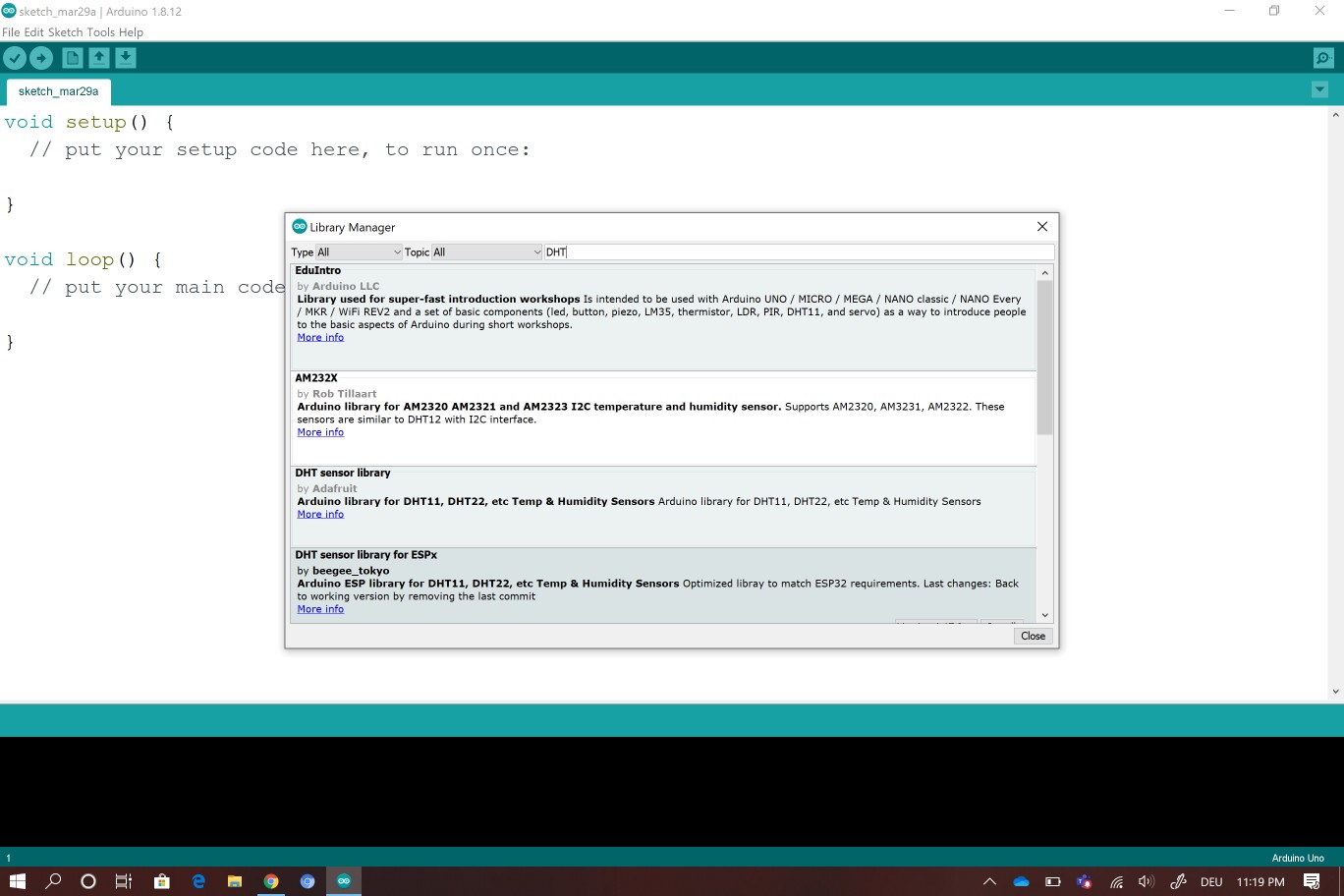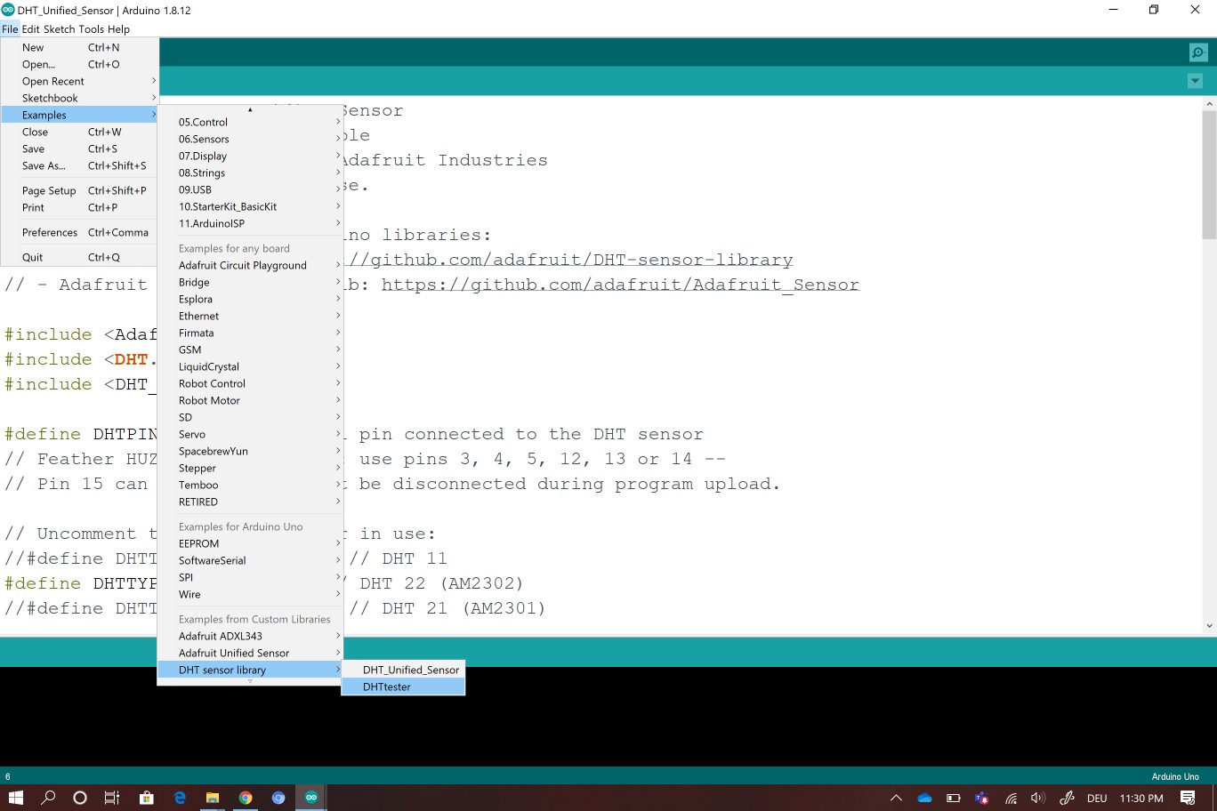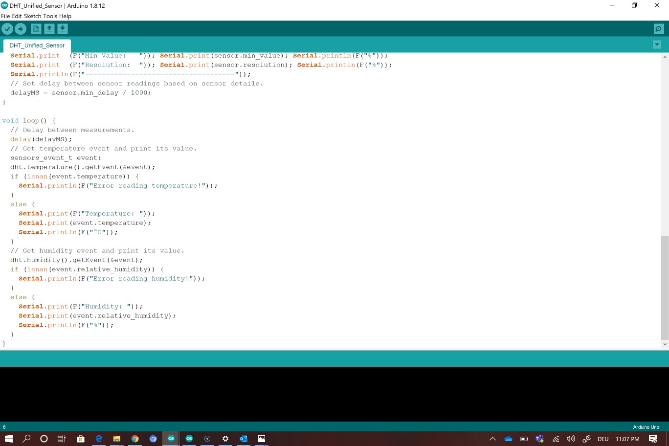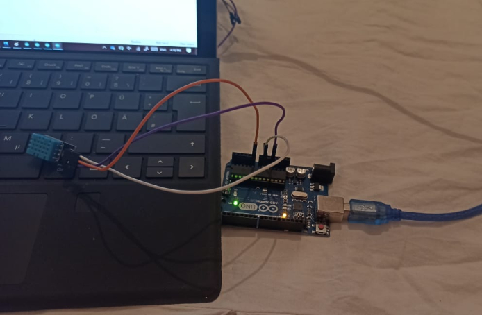 Now i can try my code using the arduino. I conected the DHT11 to the arduino as following
