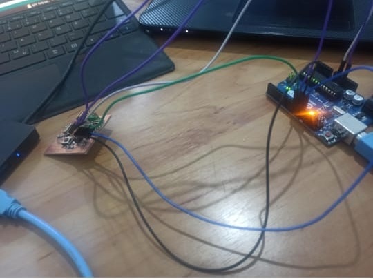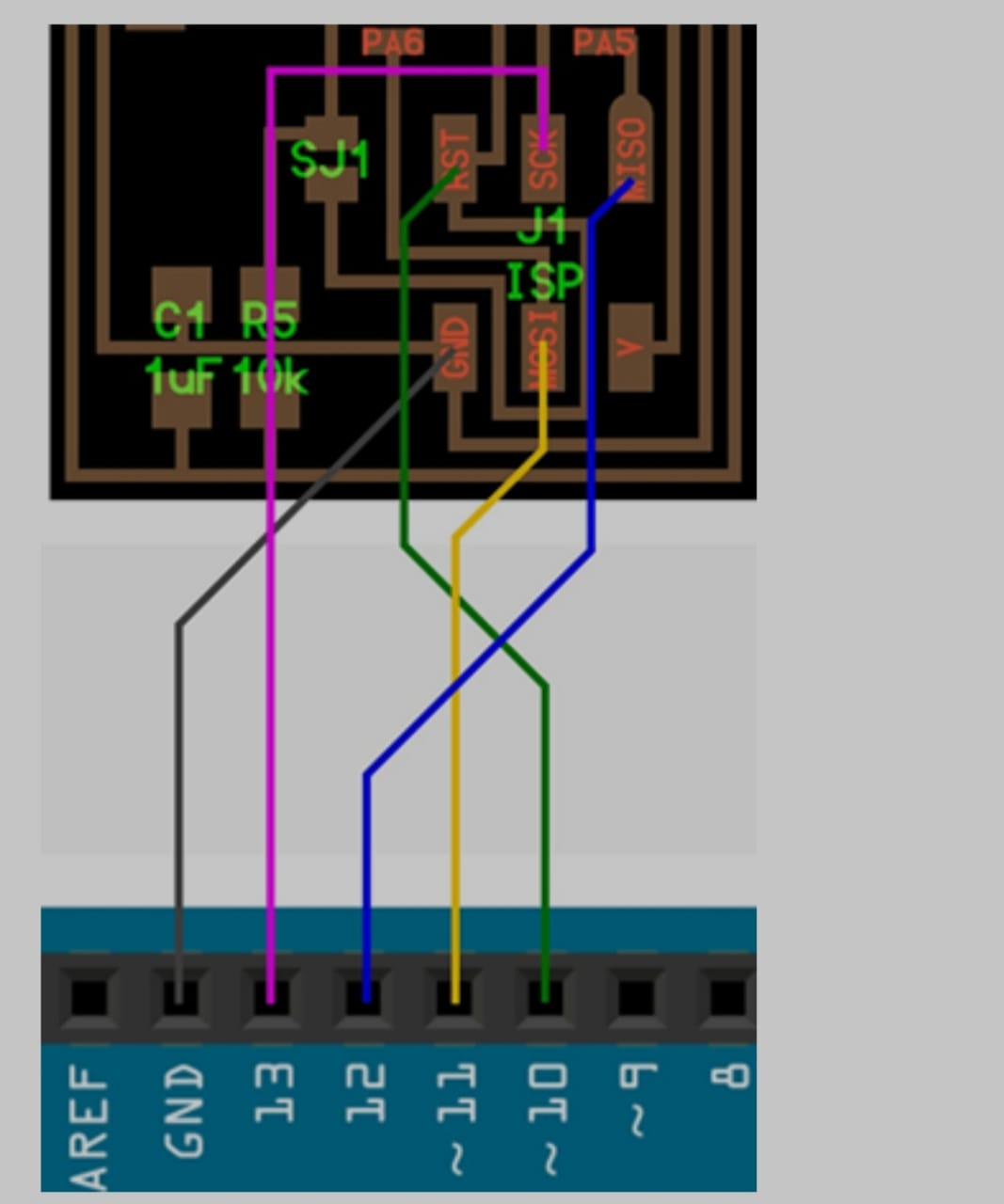it looks fine and to make sure i had to program it so i can read the temperature and the humidity from the DHT 11 at first i tried to program the board using the FTDI but it didn’t work so i used th arduino to program it based on the fomllowing connections