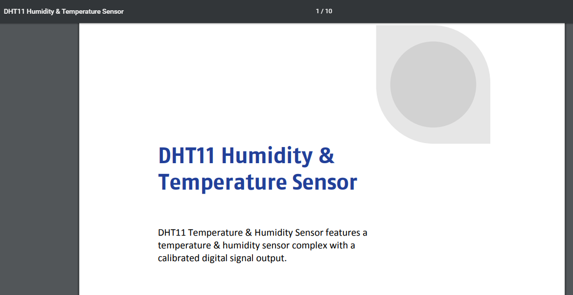DHT11 Temperature & Humidity Sensor features a temperature & humidity sensor complex with a calibrated digital signal output. By using the exclusive digital-signal-acquisition technique and temperature & humidity sensing technology, it ensures high reliability and excellent long-term stability. This sensor includes a resistive-type humidity measurement component and an NTC temperature measurement component, and connects to a highperformance 8-bit microcontroller, offering excellent quality, fast response, anti-interference ability and cost-effectiveness