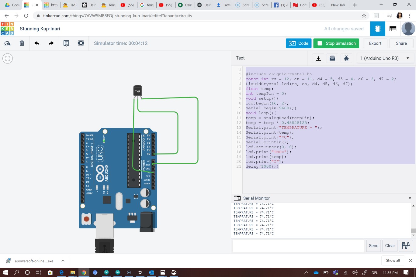 Unfortunately because of the covid19 i can’t acess the fab ab and i can’t bring the arduino so i thinked about a kind of simulation for the temperature sensor on the software tinkercad .So i just downloaded the code and istarted simulation
