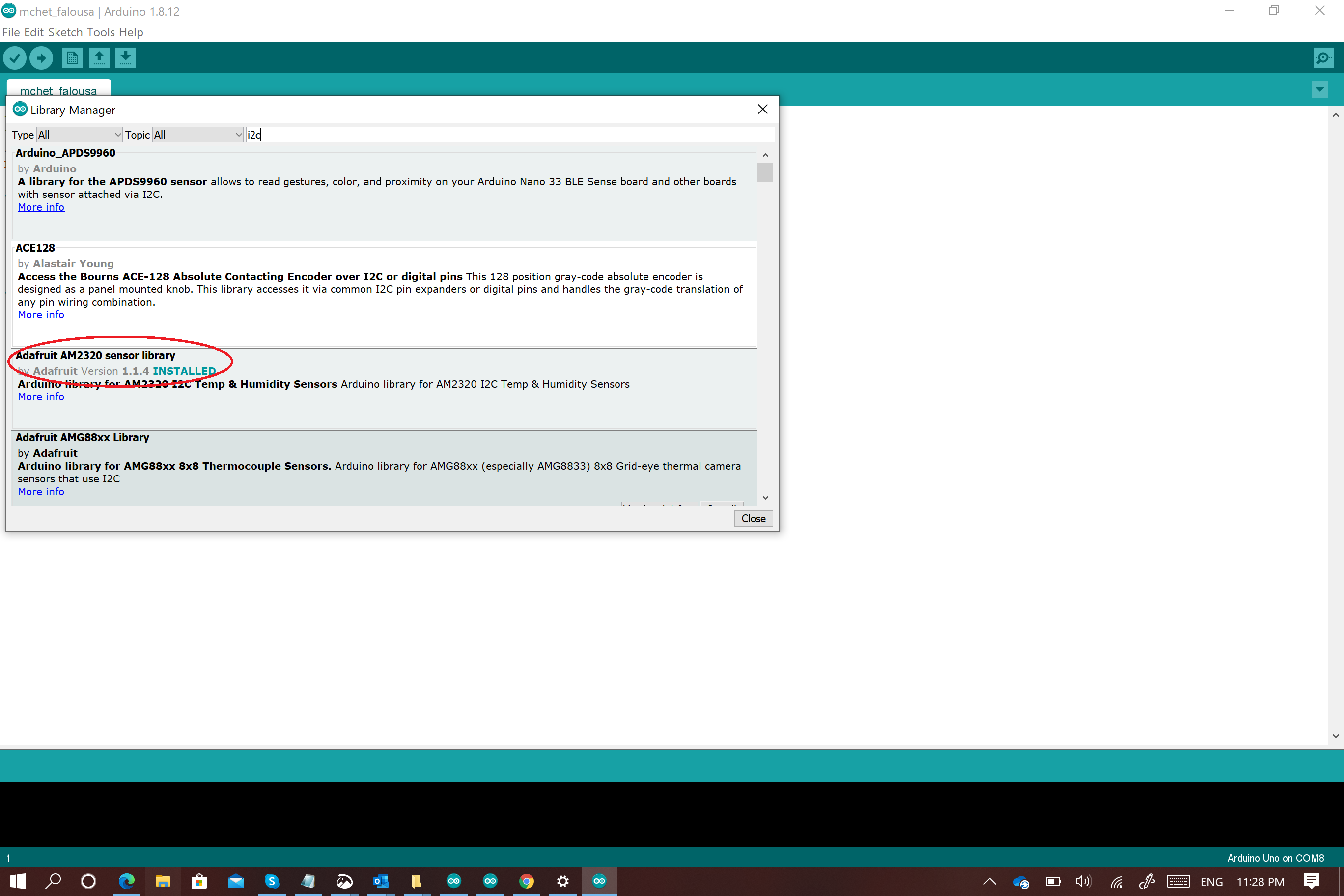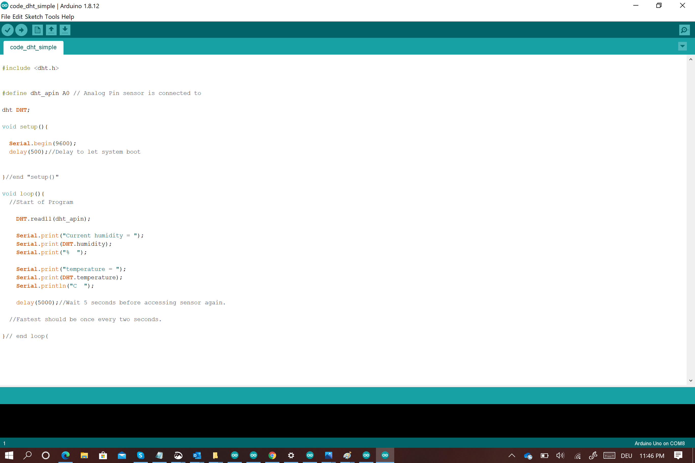 I also included the dht.h library and defined its pin where it is connected (A0)