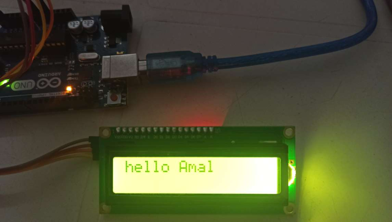 The data which should appear on the LCD display is “Hello Amal”