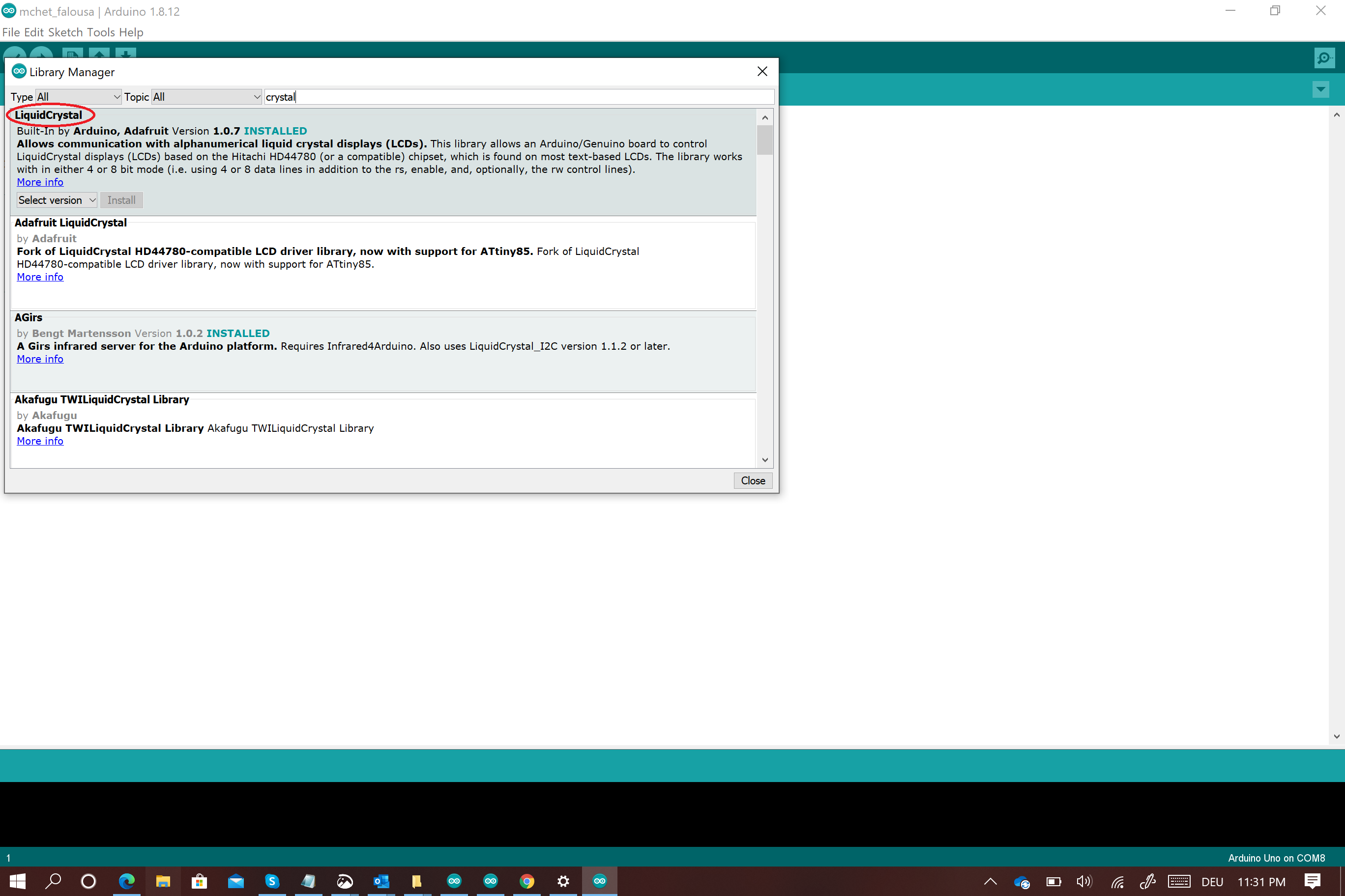 With this try i was sure that the LCD display works well and every thing was fine with the first code