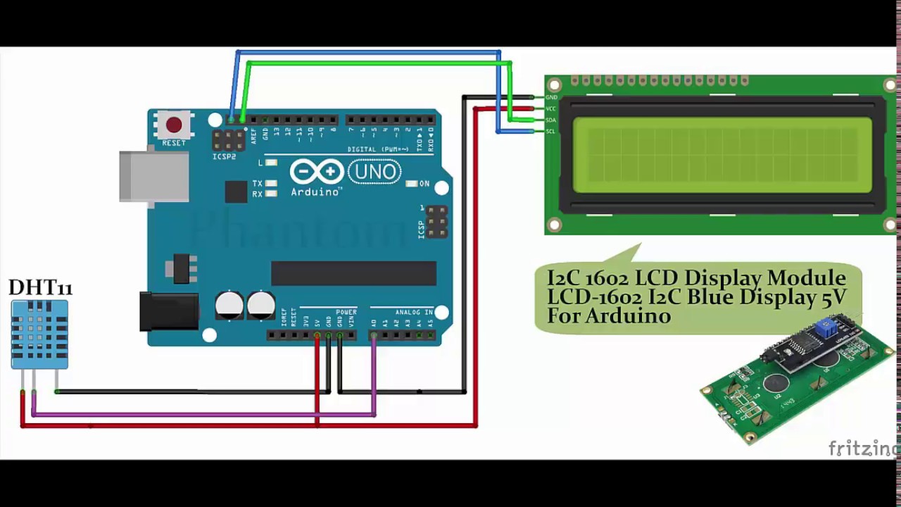 Before that I need to connect the i2c , the arduino and the DHT11 as following