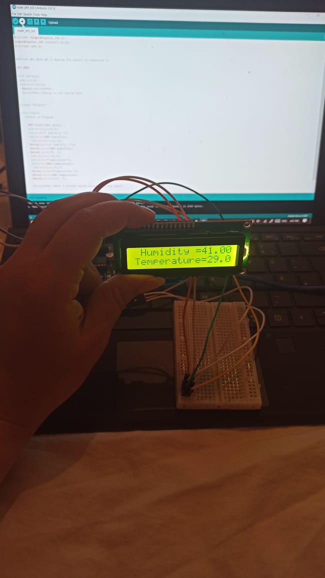 I will create a code to read the DHT11 sensor and display the data in a LCD display through I2C communication.