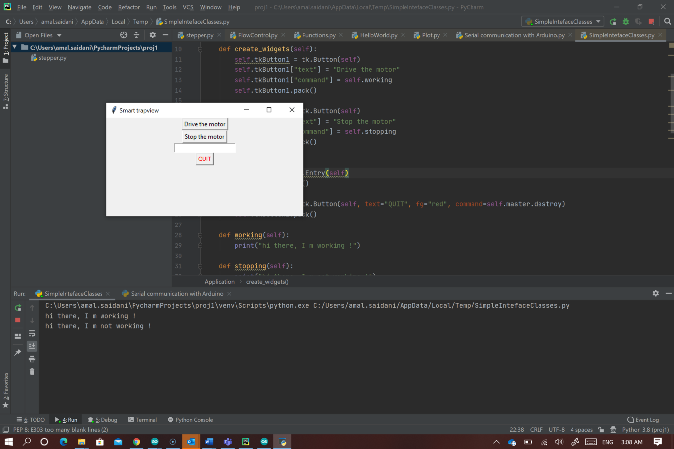For this week I ll be designing a python application to control my previous week assignment ,the stepper motor. TPython is an easy to learn, powerful programming language. I will use Tkinter i to make GUI based applications in python. Tkinter provides several GUI widgets like buttons,menu, canvas,text,frame,label etc
