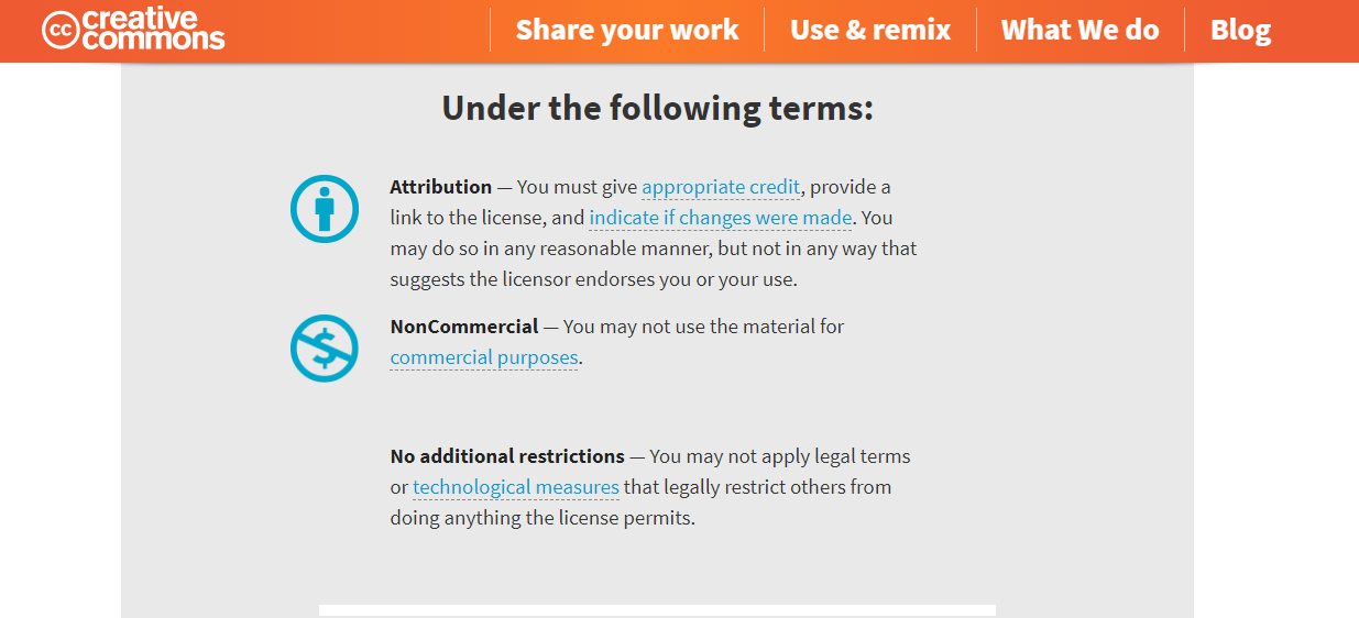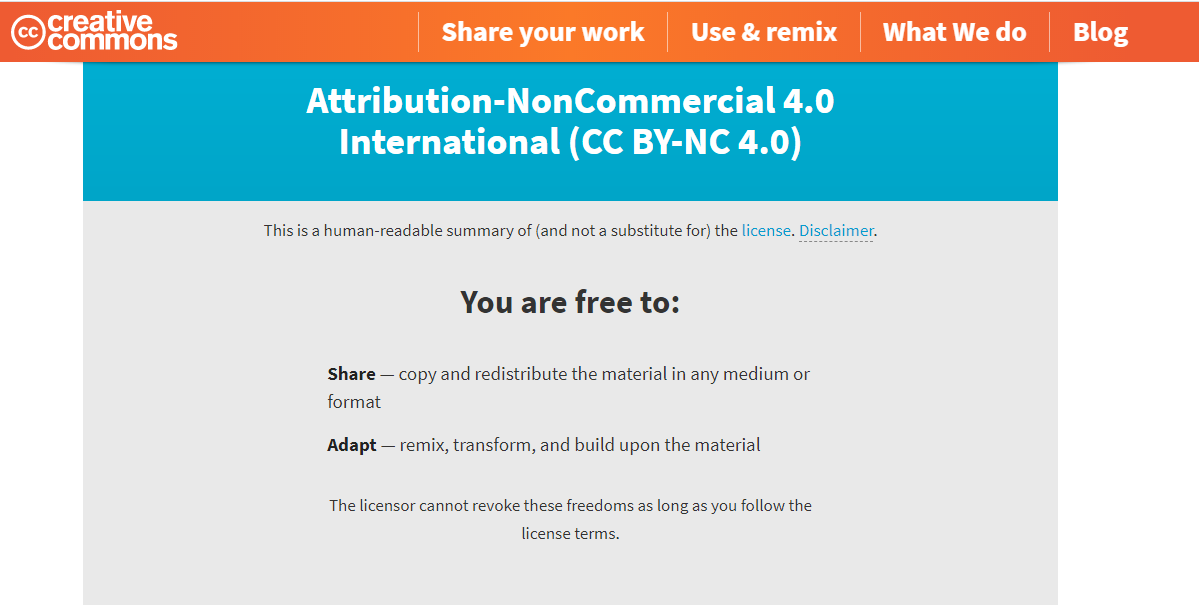 A Creative Commons (CC) license is one of several public copyright licenses that enable the free distribution of an otherwise copyrighted work. A CC license is used when an author wants to give people the right to share, use, and build upon a work that they have created. CC provides an author flexibility (for example, they might choose to allow only non-commercial uses of their own work) and protects the people who use or redistribute an author’s work from concerns of copyright infringement as long as they abide by the conditions that are specified in the license by which the author distributes the work