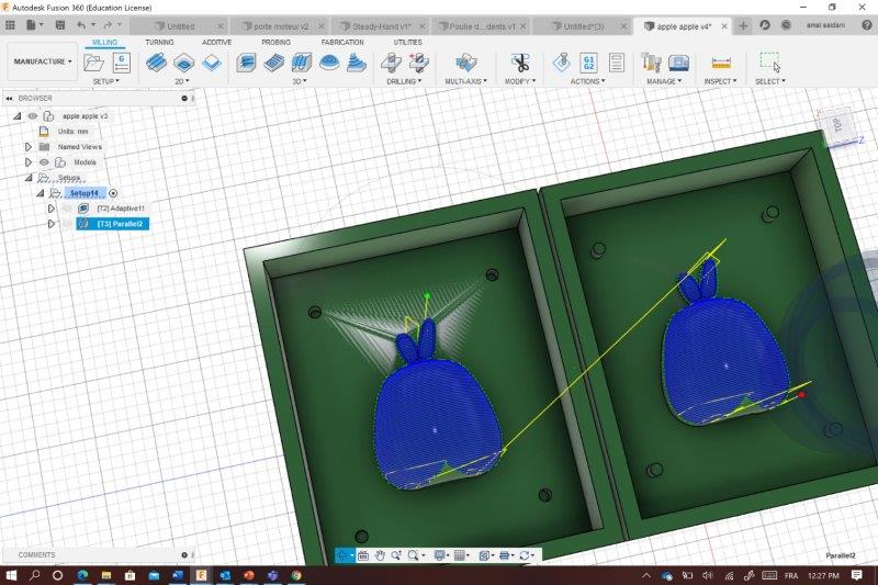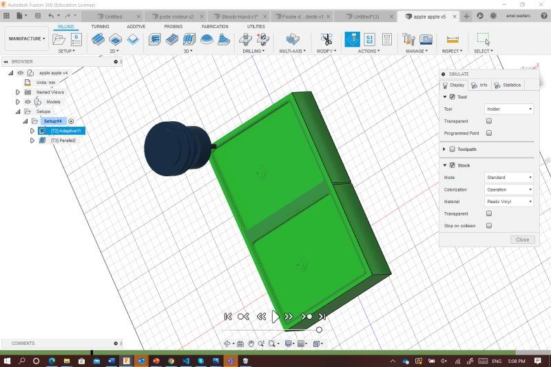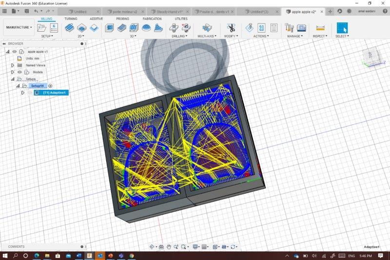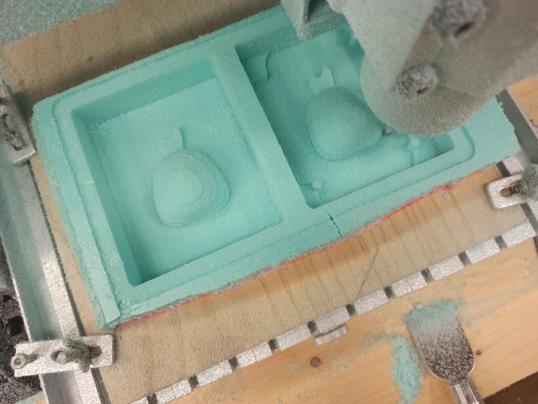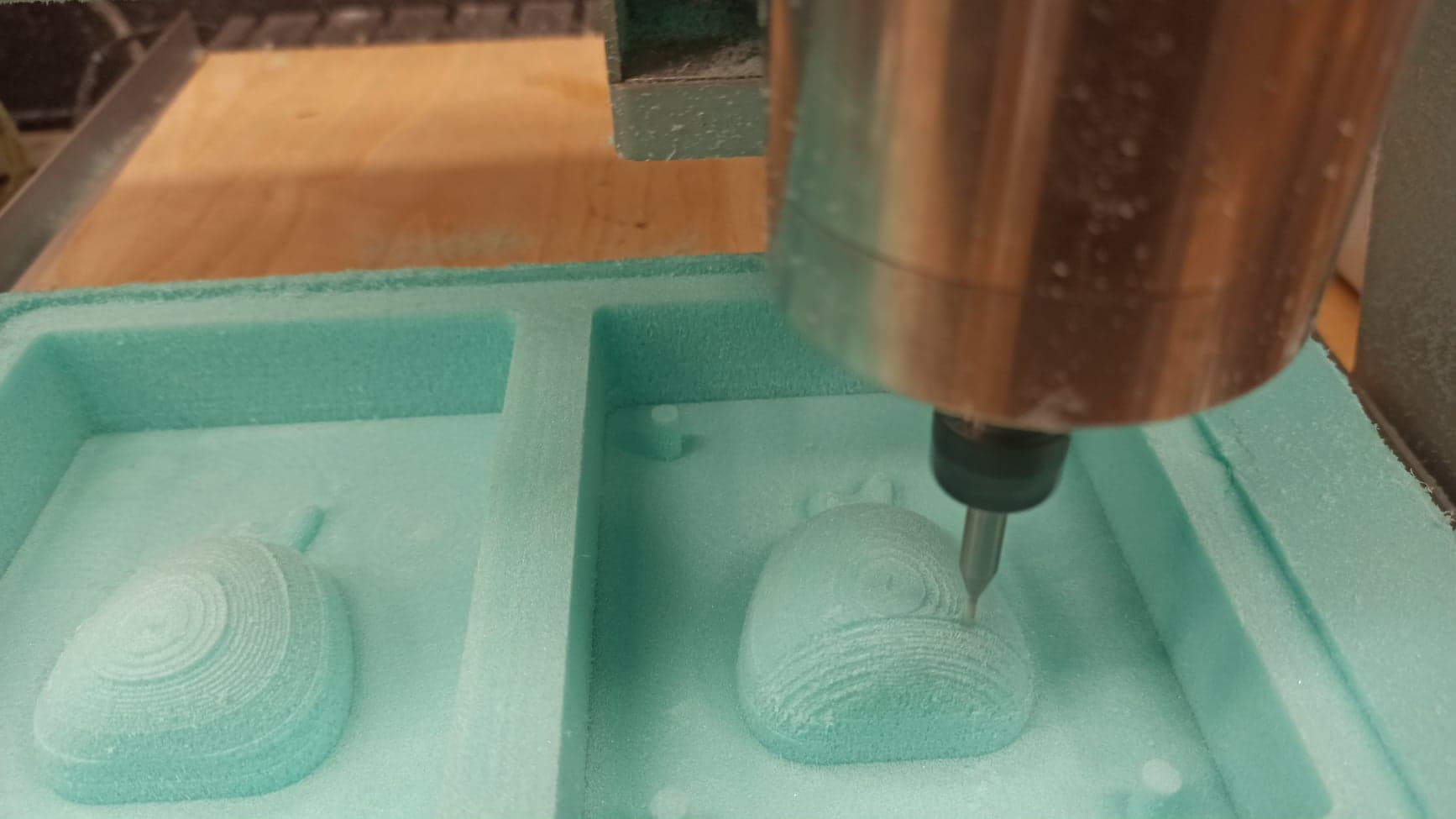 After the rough cut it’s time to move to the finishing I conserved my x, y position and i just set the Z origin , Not to forget the tool changeing ! it seems like i m having my final mould and really it looks nice enough :)