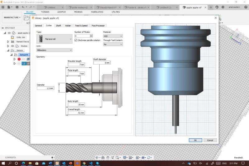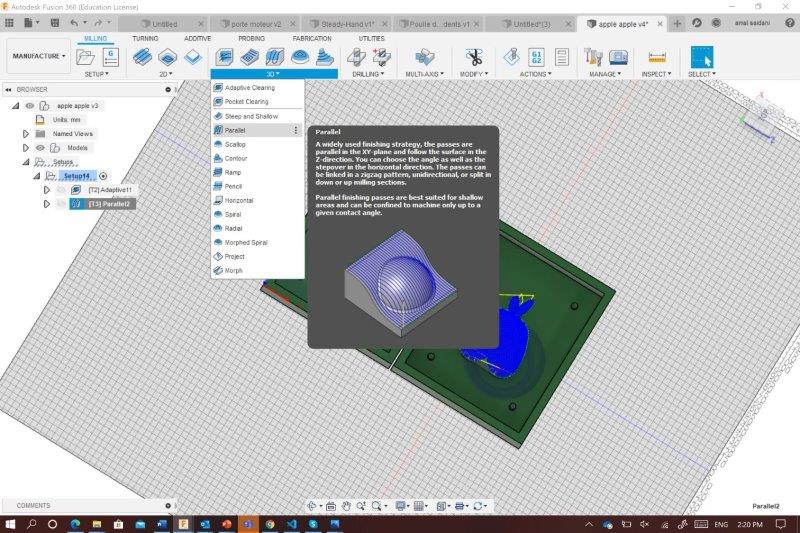 For the finishing i needed to deal with the parallel option and i had to use a smaller tool that’s why i choose a 1.5 diameter one