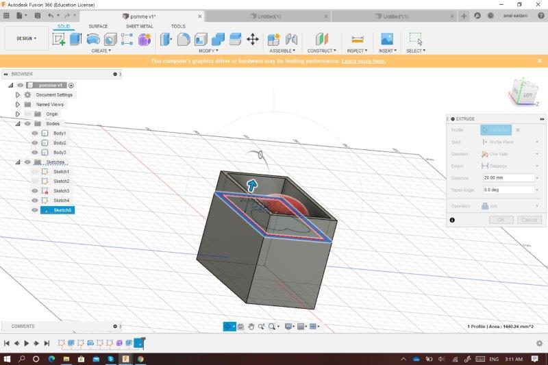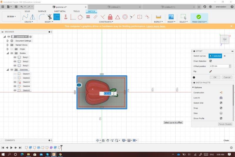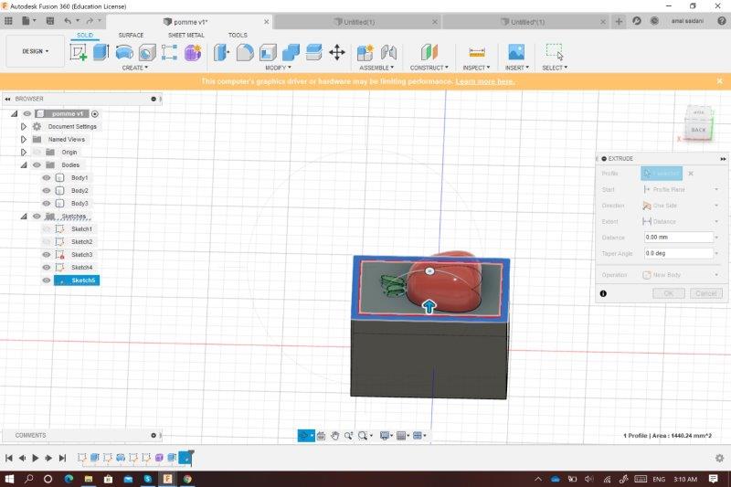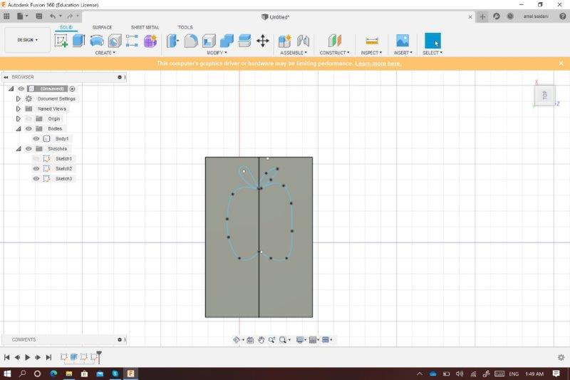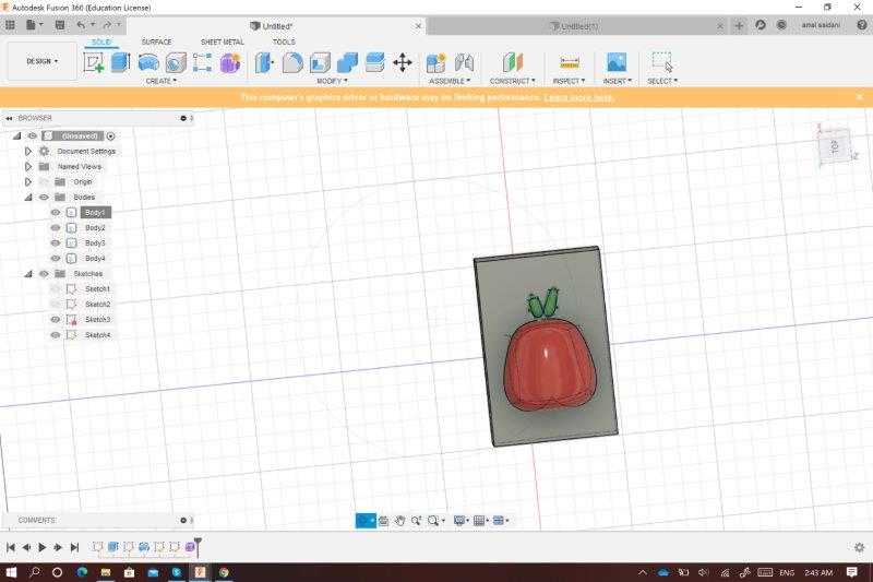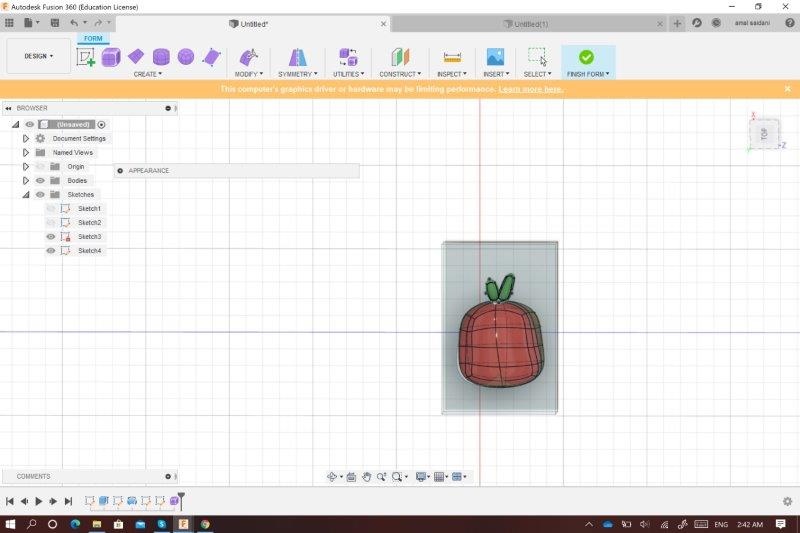I used the create form feature to fill in the apple faces and edges and honestly i need to say that it wasn’t as so easy but fortunately i did it well . I changed my apple colour using the appearance so it can looks fresher :)