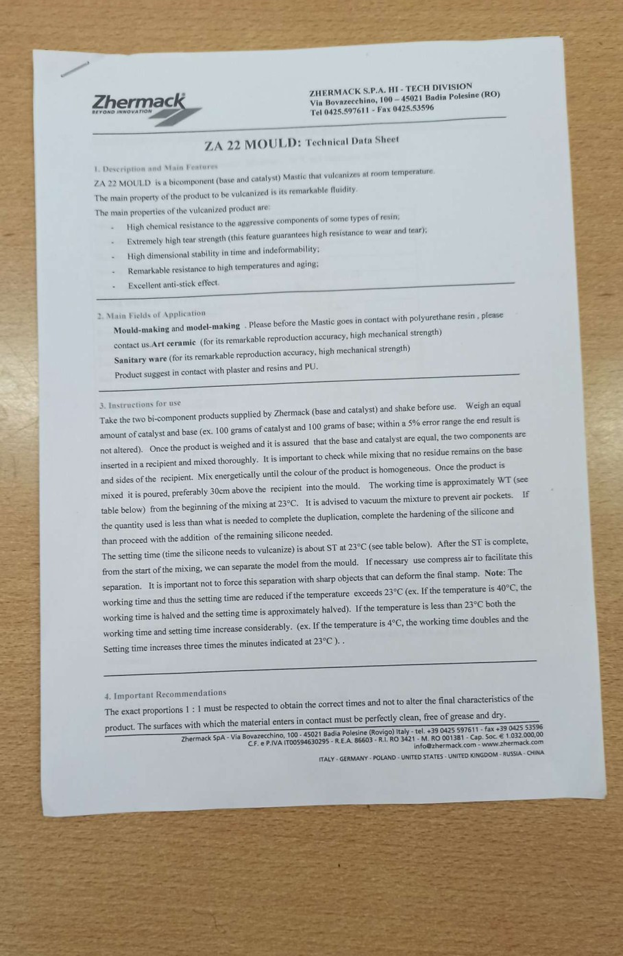 To make the mold,it is crucial to follow the instructions and parameters shown in materials’ datasheet. Mixing ratios, pot life, curing time,