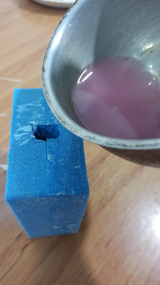 Then i slowly poured the liquid inside the mold throw the top whole as showing on the picture