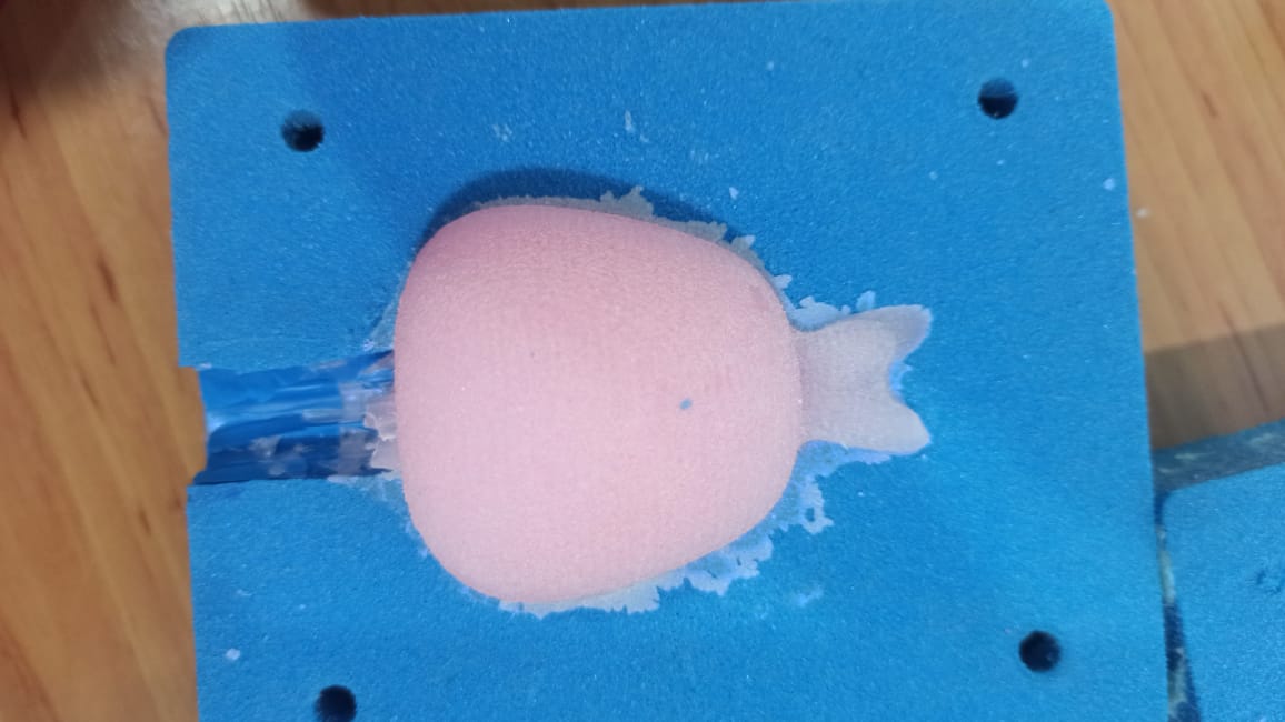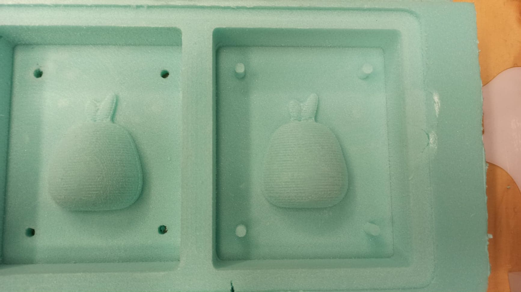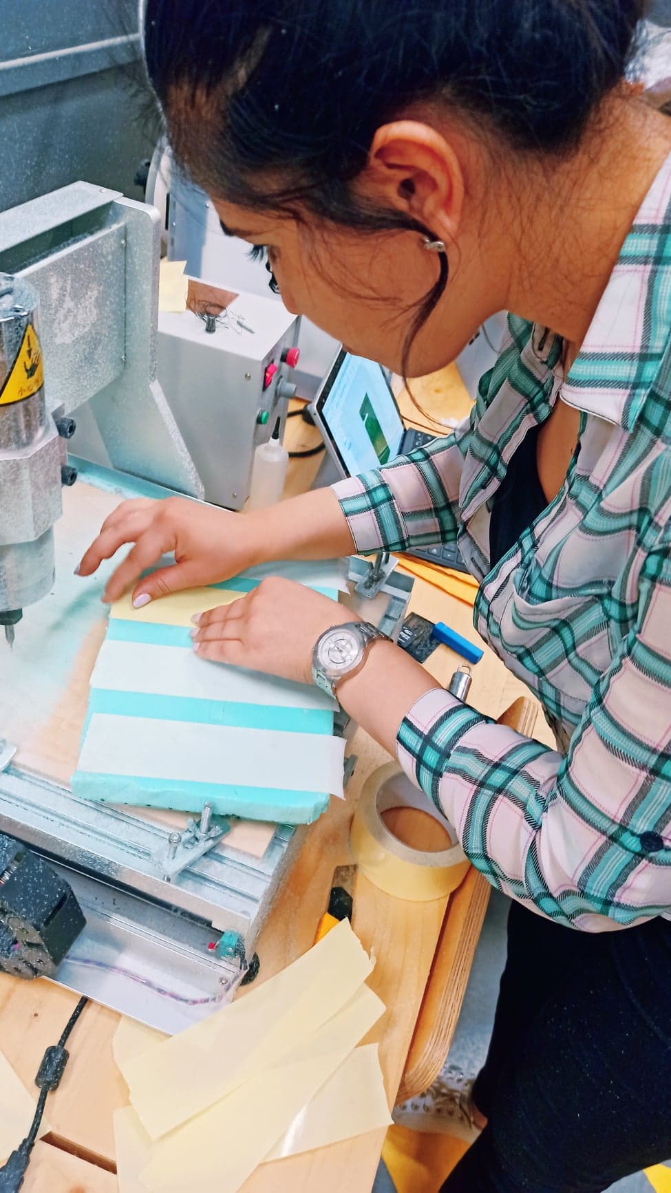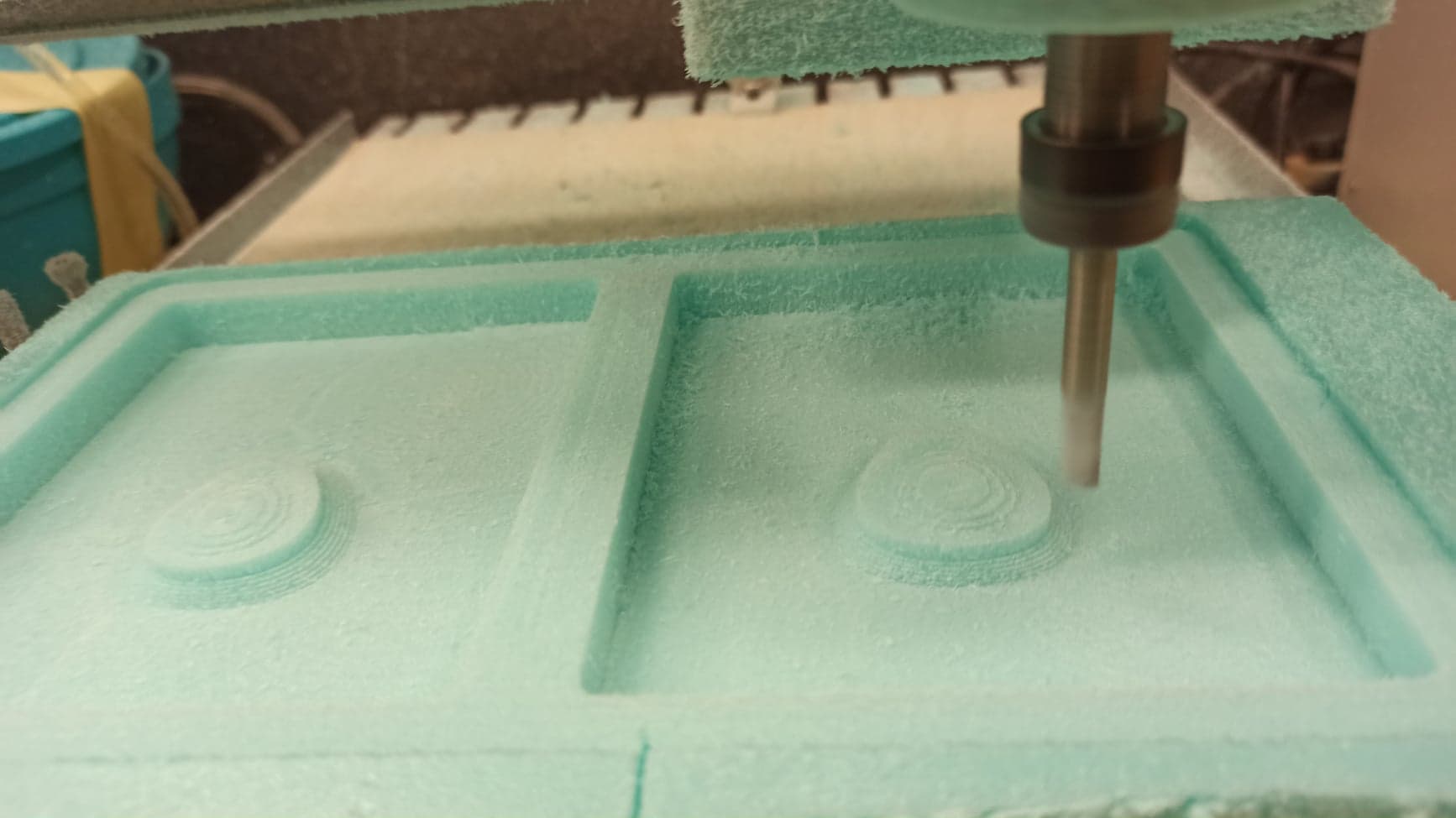 First i cutted a (23*14cm) rigid foam piece and i fixed it on the cnc machine table using two sided tape . I had to push it down to make sure it sticks well so to not move while the milling process.