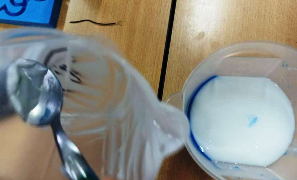 Once ti checked that the catalyst and the base are equal, i puted them in one recipient and i mixed thoroughly. It is important to check while mixing that no residue remains on the base and sides of the recipient.