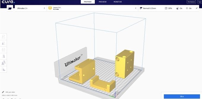 We used Ultimaker2 to print some pieces and Raised3D N1 for the other pieces