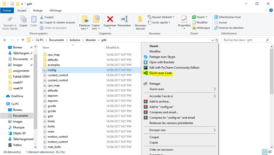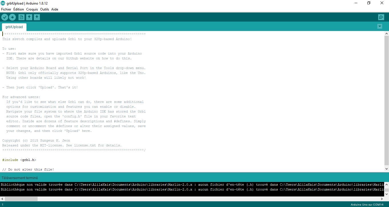 The software we used is GRBL which is an open source software to control CNC. For this project We used CoreXY system so the first step we ve done is to change in -config.h- in grbl folder