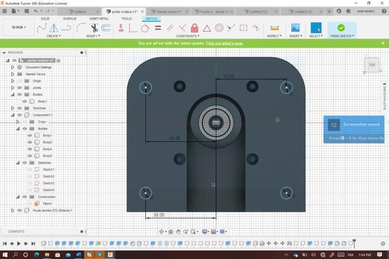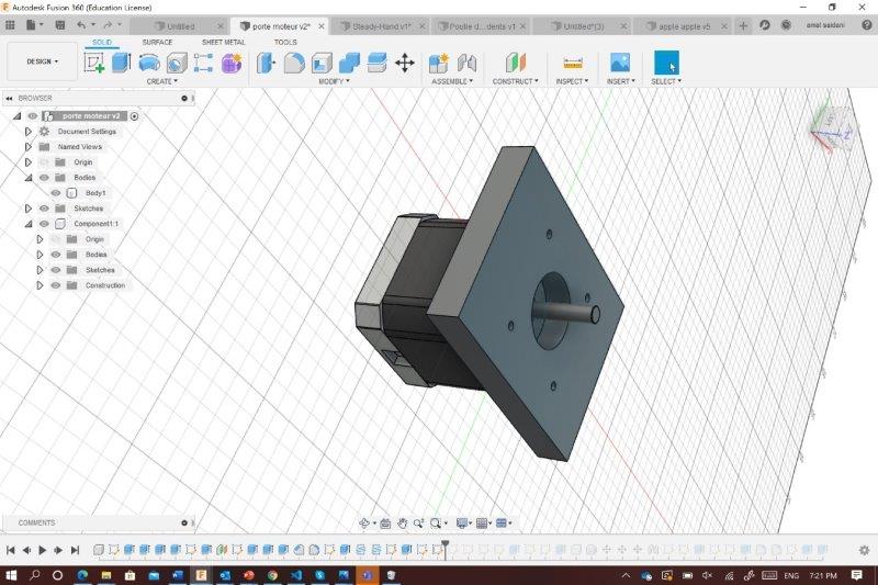 I don’t have to forget that the belt will cross around the motor That ‘s why i designed this kind of _U_letter form and i extruded it to have the final design