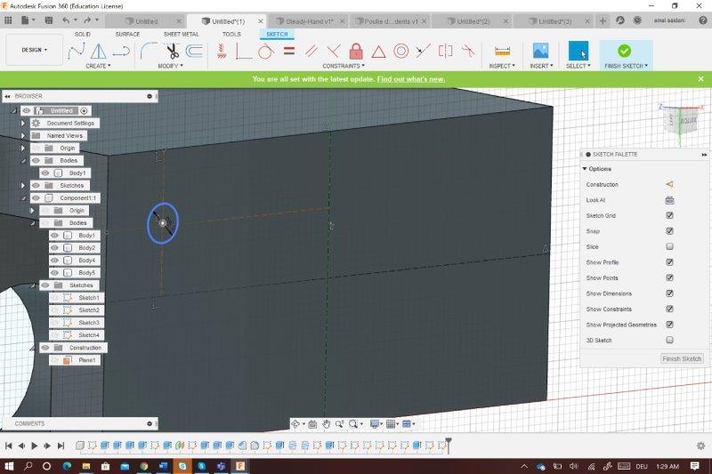 I choose the front plane to create a sketch rectangle and i had to design a circle inside this rectangle where the motor axle will pass throw