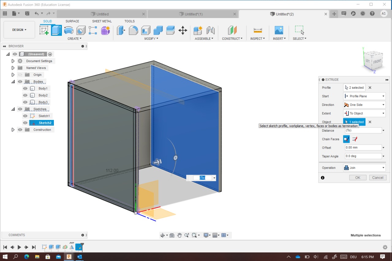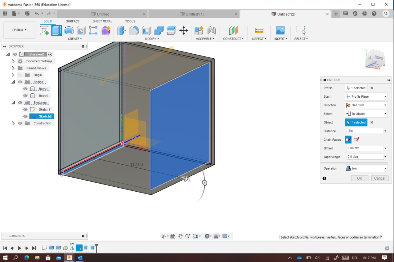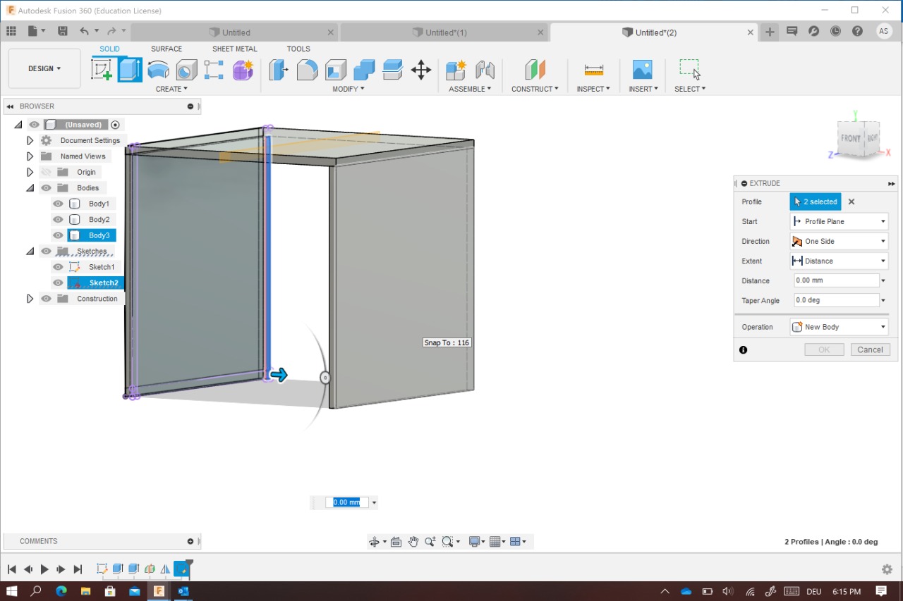 I made windows on the left and right side to be cutted by the laser cutter from plexiglass , I extruded 4mm as i defined the depth