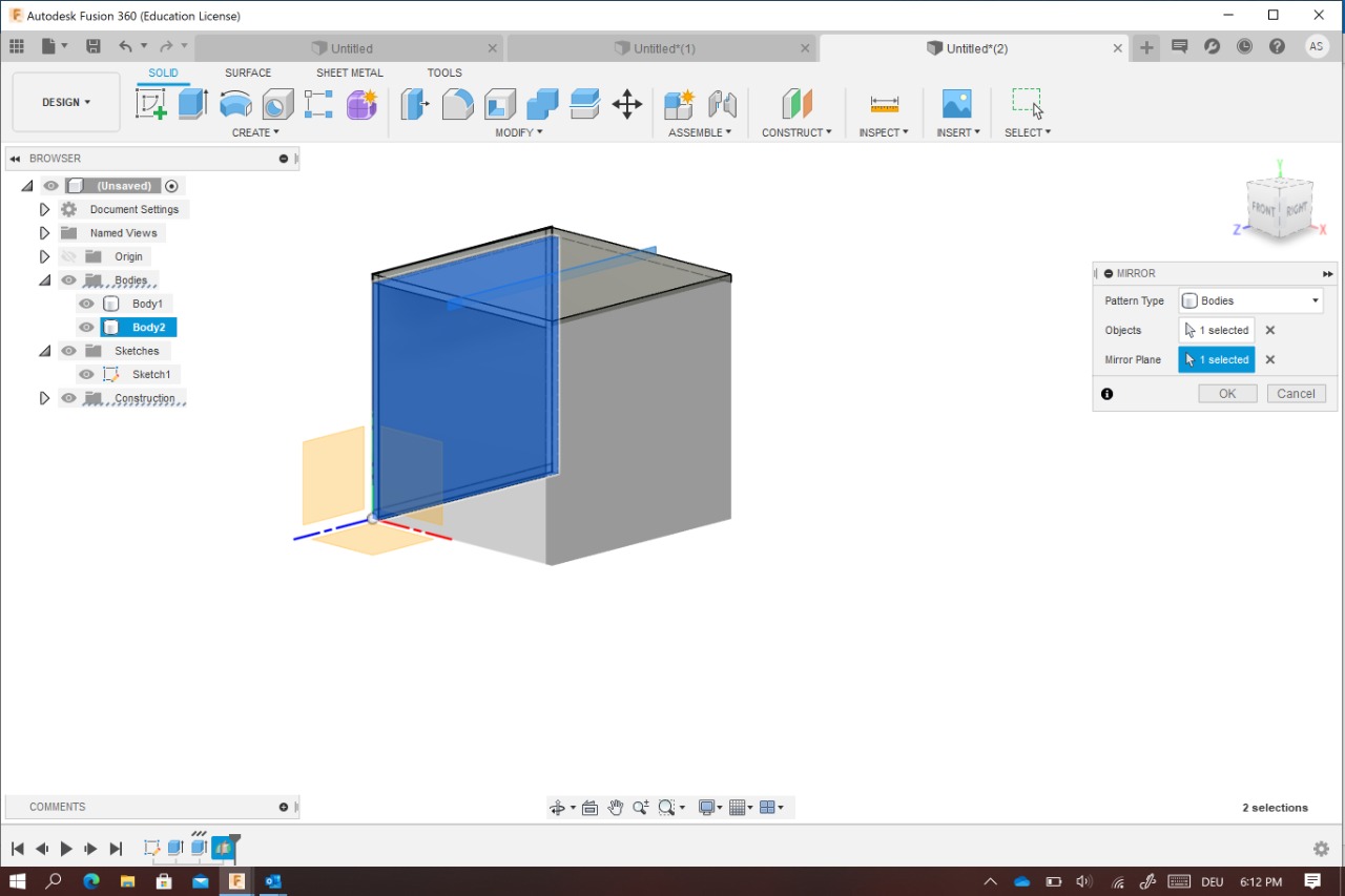 I used the miror option to make the right side then i used the same method as before to create the back and the front side