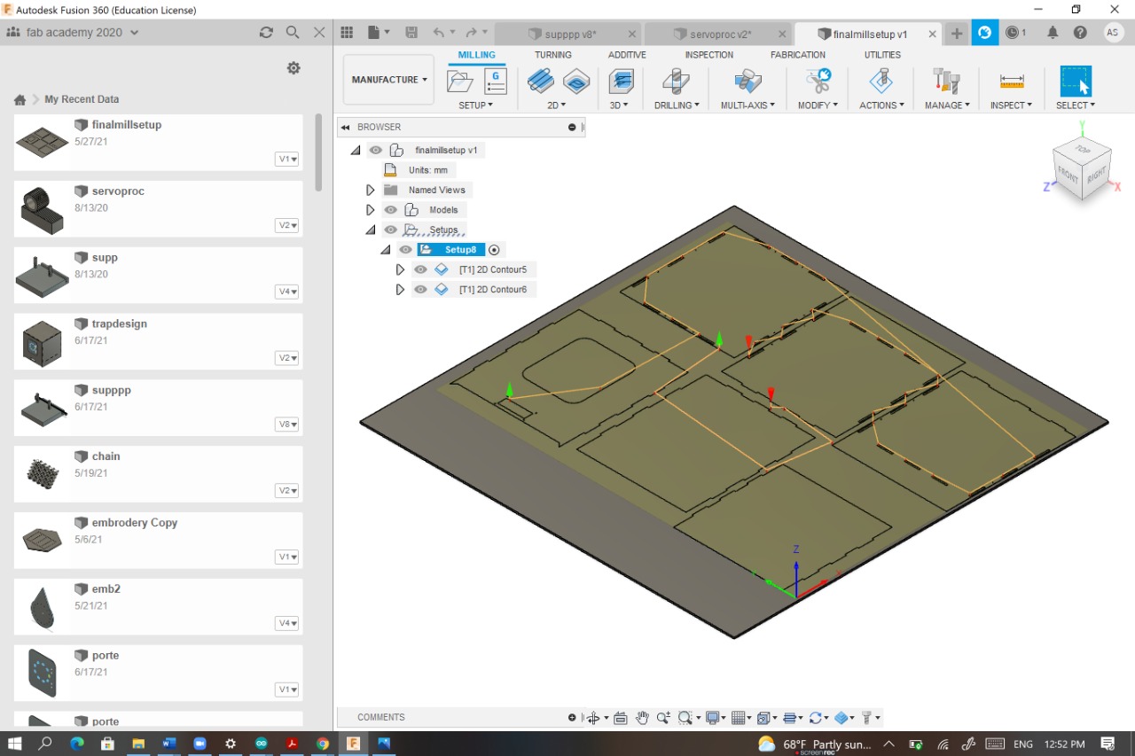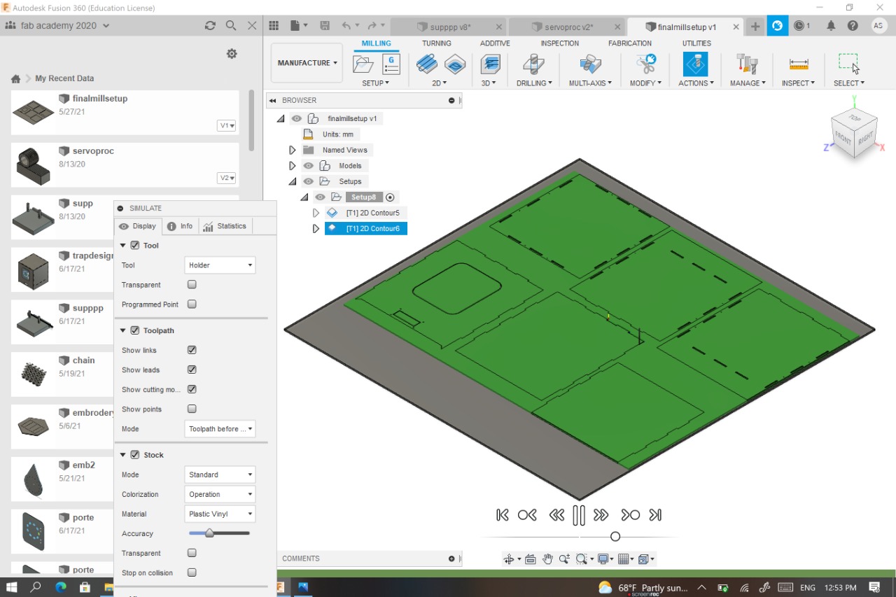 I started with the inner cutting going the outer cutting I selected the inner holes then i movedto the outside for the contour