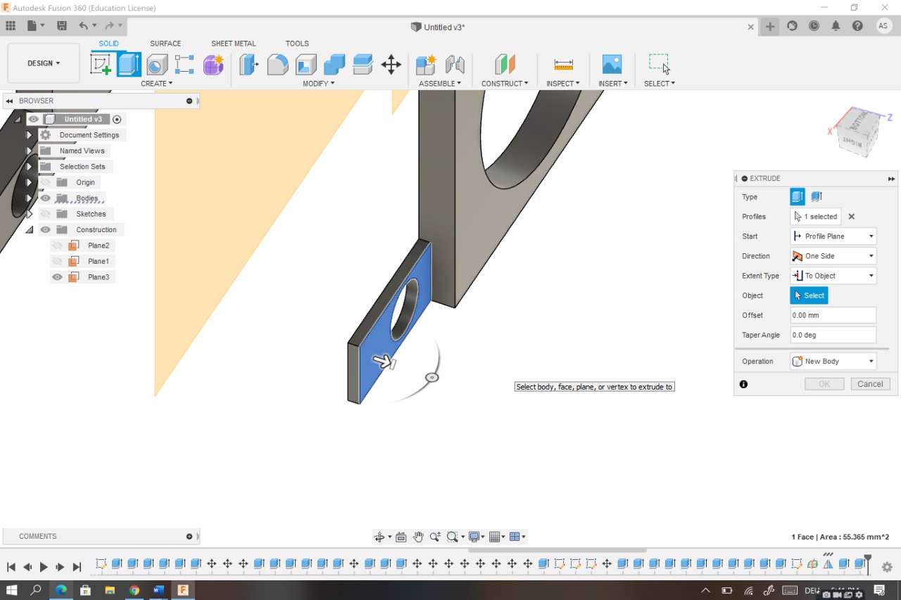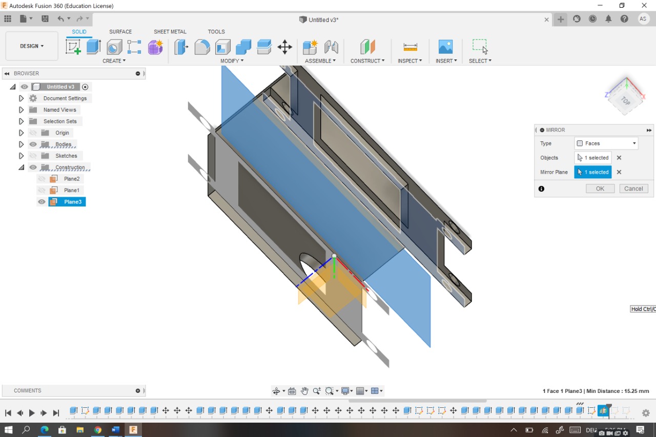 For the design I started with the left side and I used it to make the top by extruding the upper part as much as the width distance