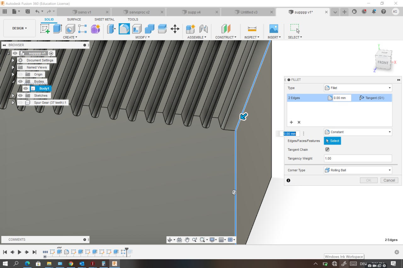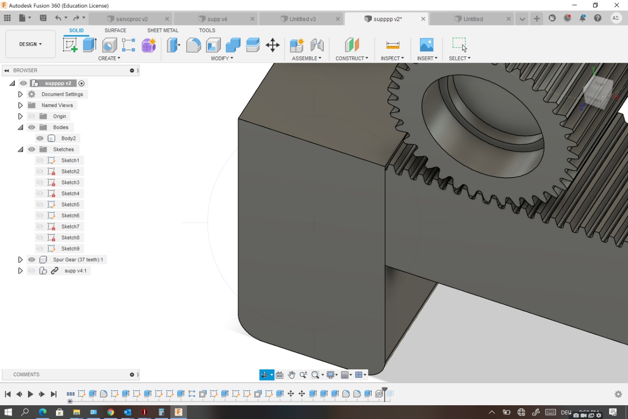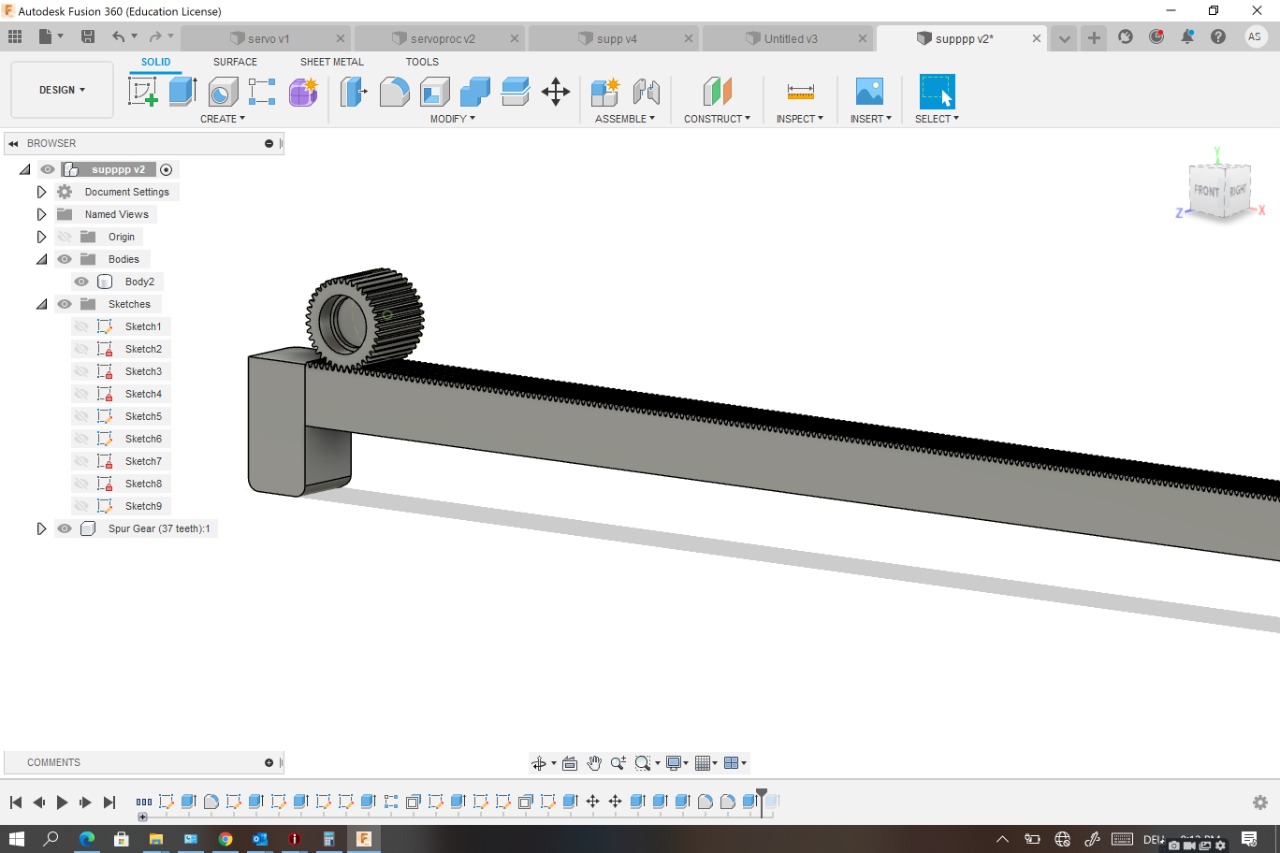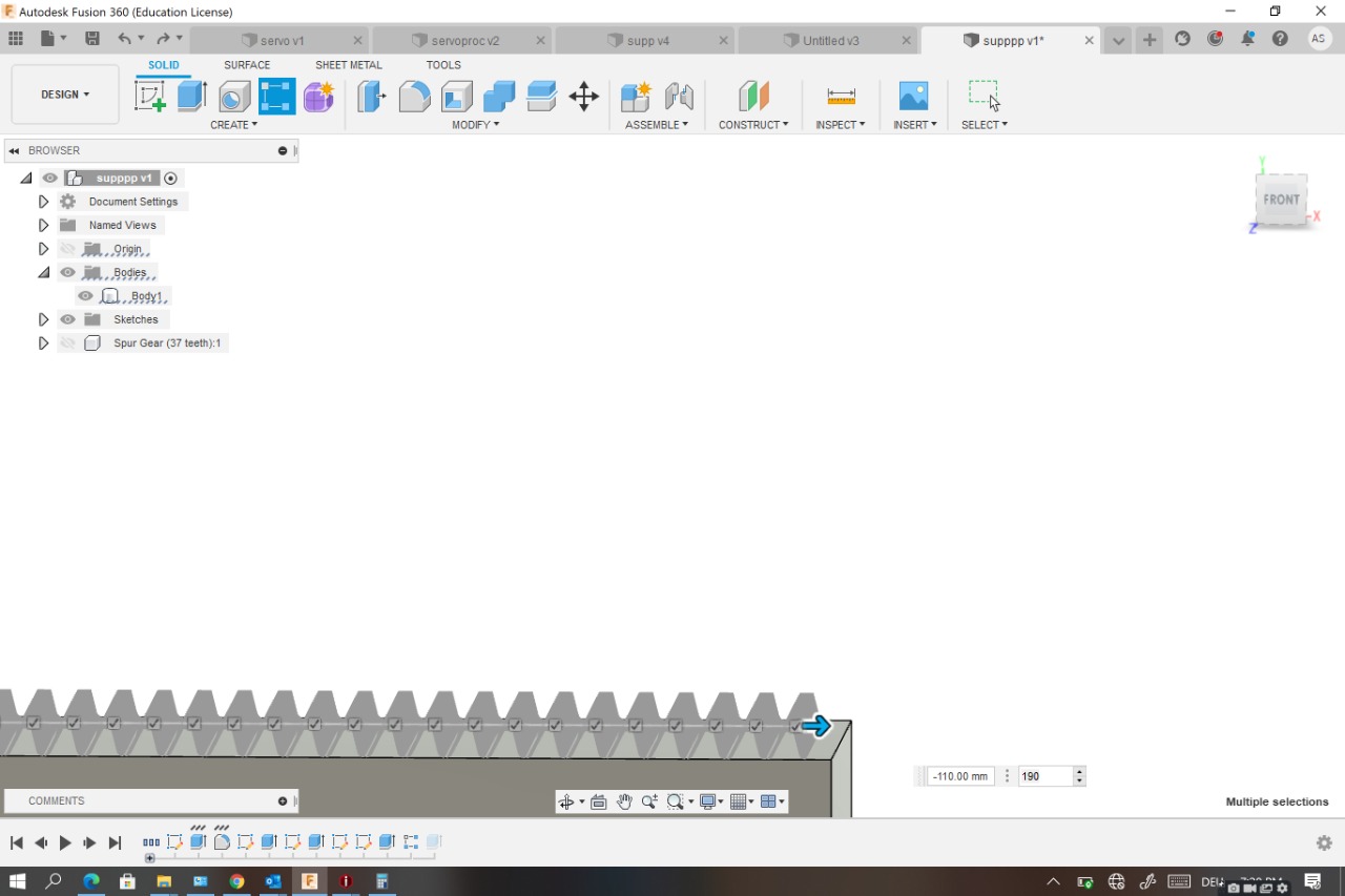 Then I designed the pusher so i started by designing 2D pusher teeth then I extruded these teeth as the pusher width