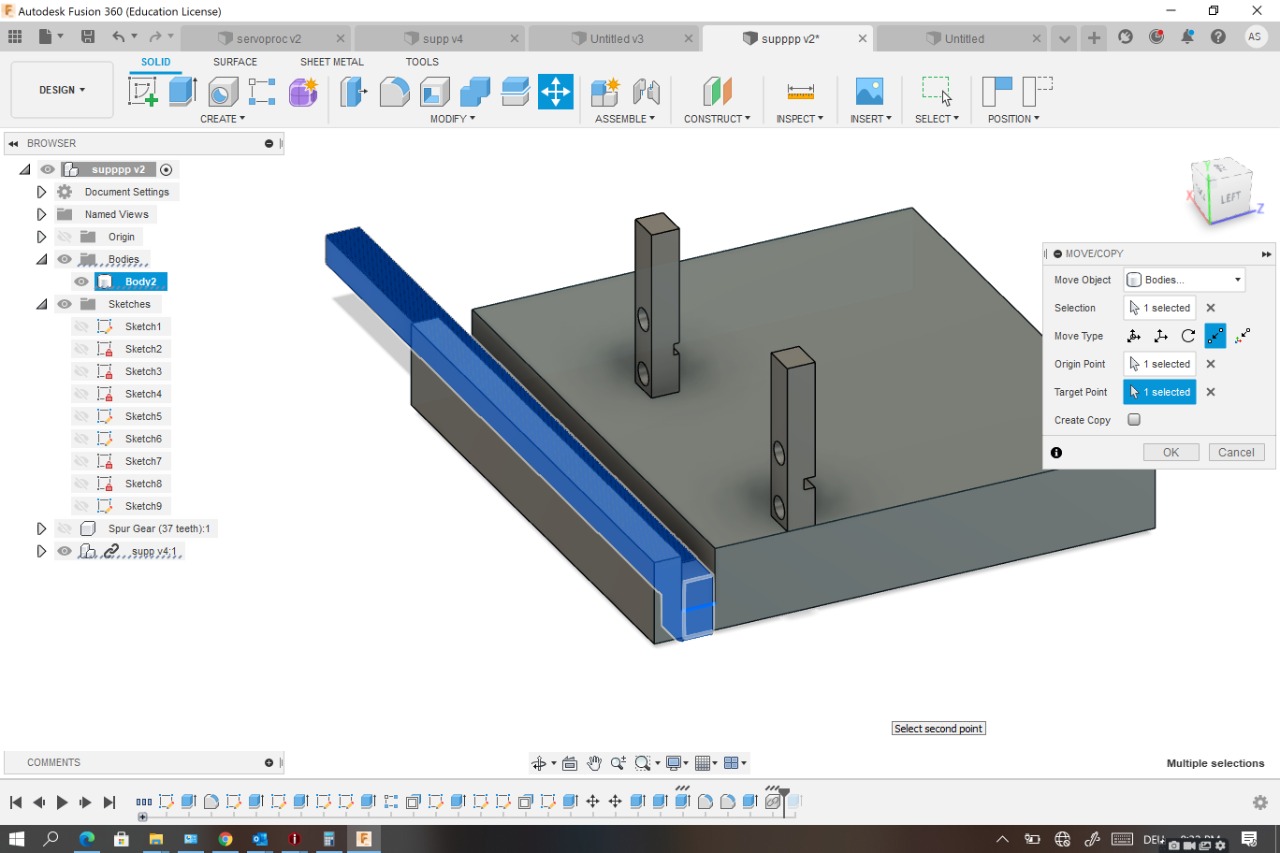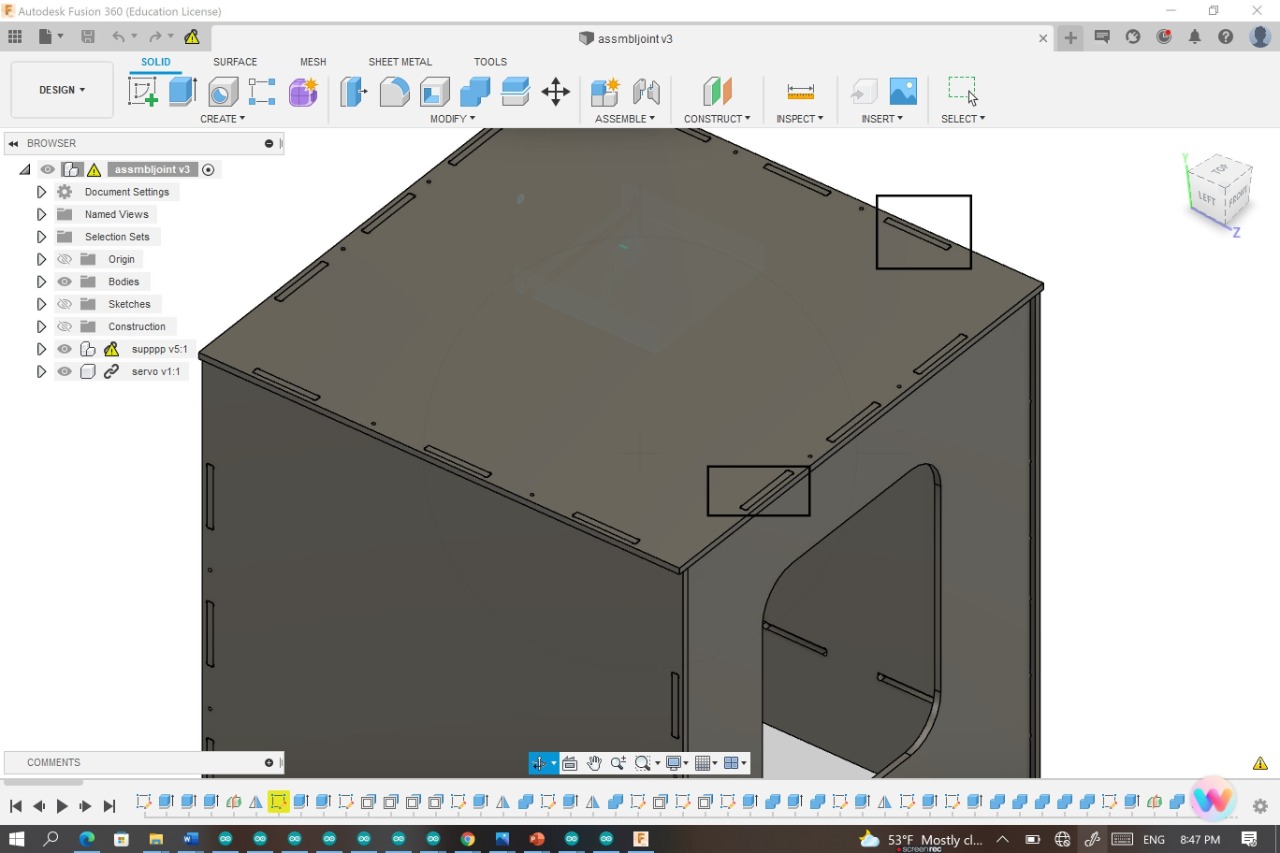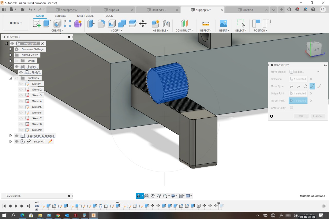 As a final step I imported the linear servo actuator and i used the move option to fix it on the top
