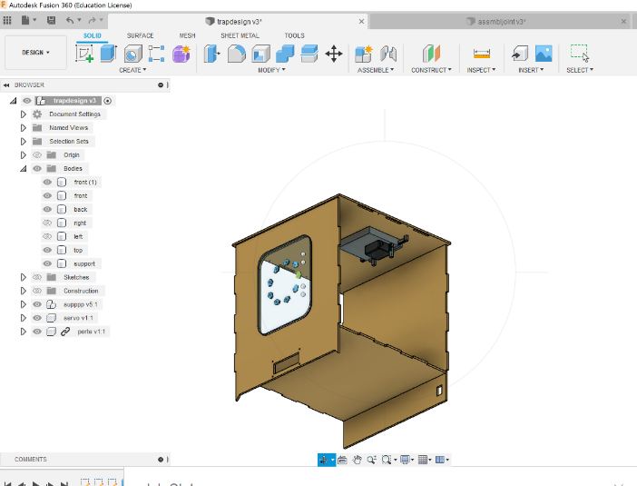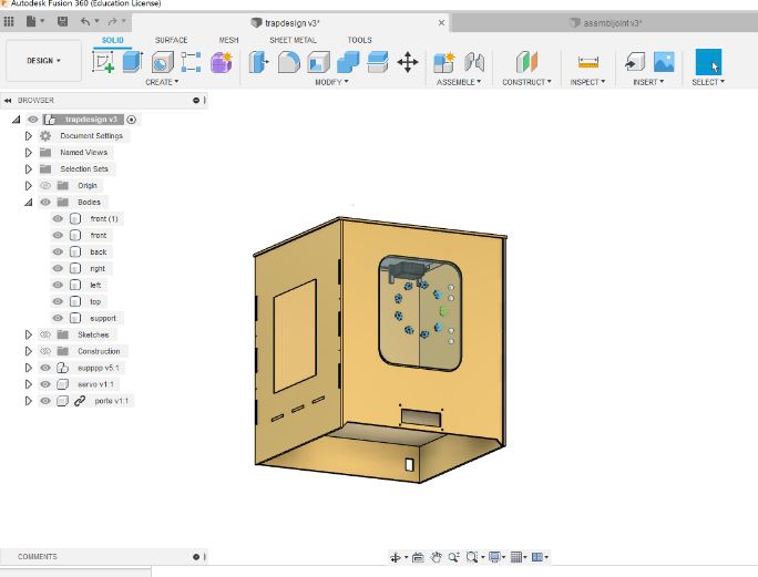 Also t fix the board inside the trap i designed a 3d printed box using Raise 3d printer