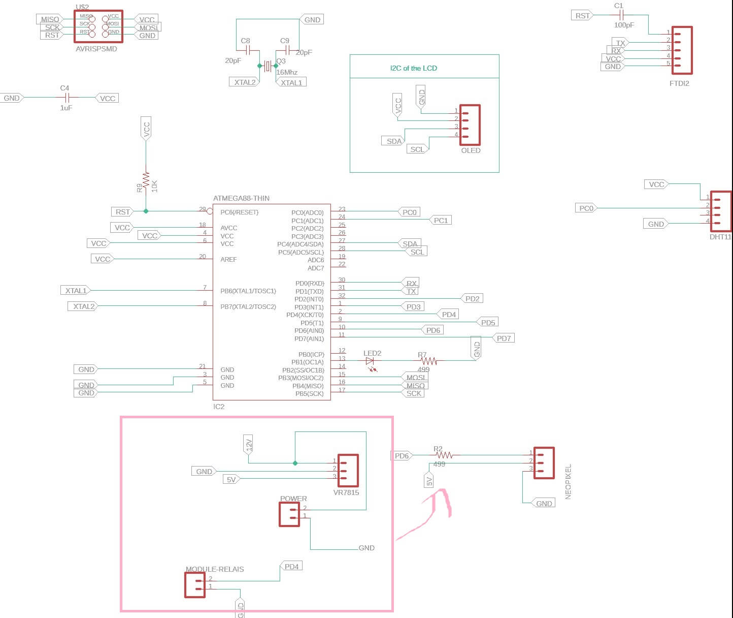 However, after a quite attempts to adjust my pins to the microcontroller and since I needed more storage for the components, I decided to go with the Atmega 328P (DATASHEET)