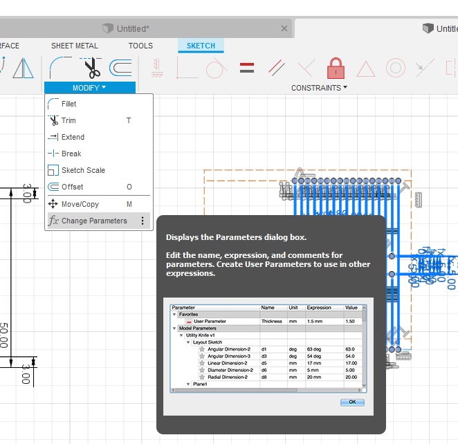 First, while you are using Fusion 360, one of the best thing you have to do, is making your dimensions personalized, in other word, fixed (this saves time and energy when you want to change your dimensions automatically)MODIFY>CHANGE PARAMETERS: