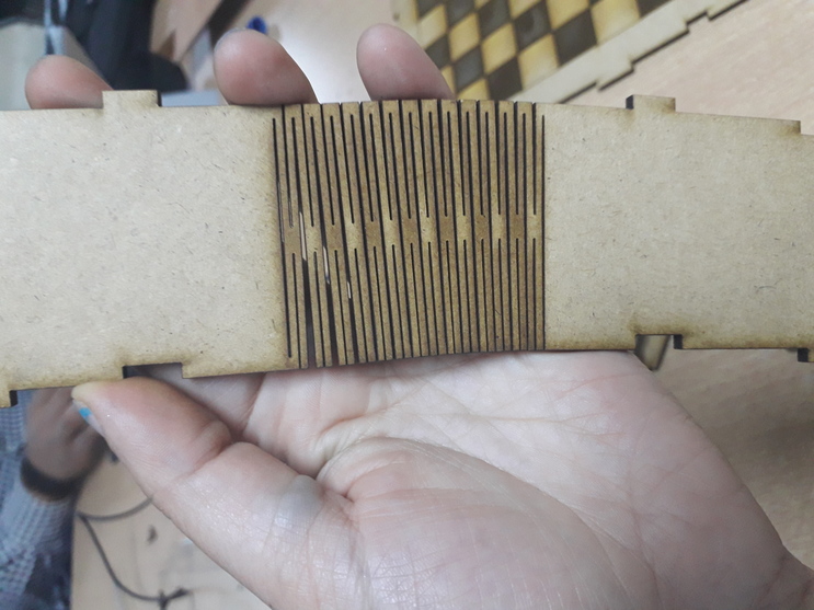 It was the first time that we had to work on something as a group; we got to work with the laser cutter this time and to test how it works , its V-ray cutting and its dimensions.