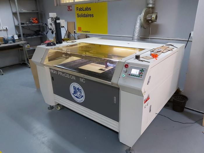 Of course, we looked for other open source laser test templates to have ideas about how are we going to test our laser cutter. And we made our own template afterwards, we chose to test cutting and engraving at the same time on a MDF (3mm) with different speed and laser power for each rectangle, then exported the sketch as a DXF format.
