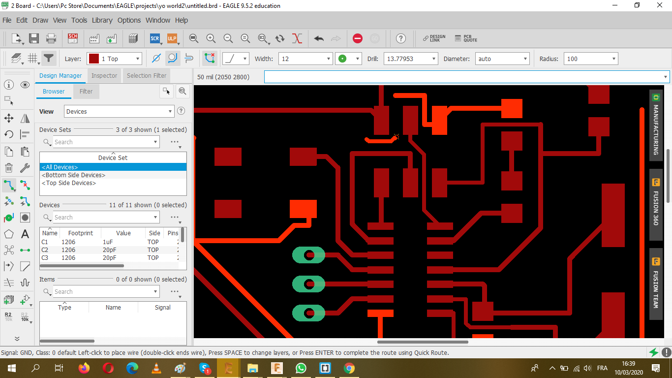• I gotta say that this was the first time that I worked with Eagle , thus this was my chance to learn how to design a board using it.