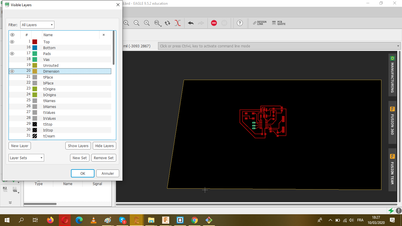 • You should hide most of the layers and leave only the top, the bottom, pads and dimensions